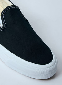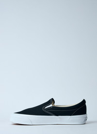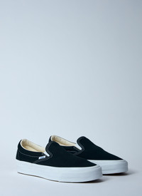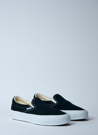 Cotton canvas slip-on sneakers with contrast trims. - Round toe - Elastictaed panels at tongue - Logo motif at side - Rear logo print - 100% Technical Fabrication Blend - Color: Black - Code: VN000CSEBA21