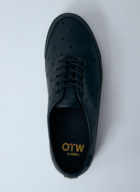 Leather sneakers in perforated star finish. - Round toe - Lace-up fastening - Side logo patch - Logo motif at heel cap - 100% Leather - Color: Black - Code: VN000DCPFAP1