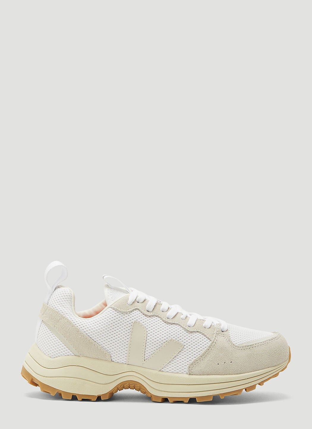 - Alveomesh upper made from recycled plastic bottles - Leather and suede contrast panels - Rubber ‘V’ logo side panel - Lace-up fastening - Logo-debossed heel - Woven heel pull tab - Wild rubber sole - Contemporary design - Made in Brazil - 100% Textile. 100% Leather. 100% Rubber. - Color: White - Code: VT0102257B