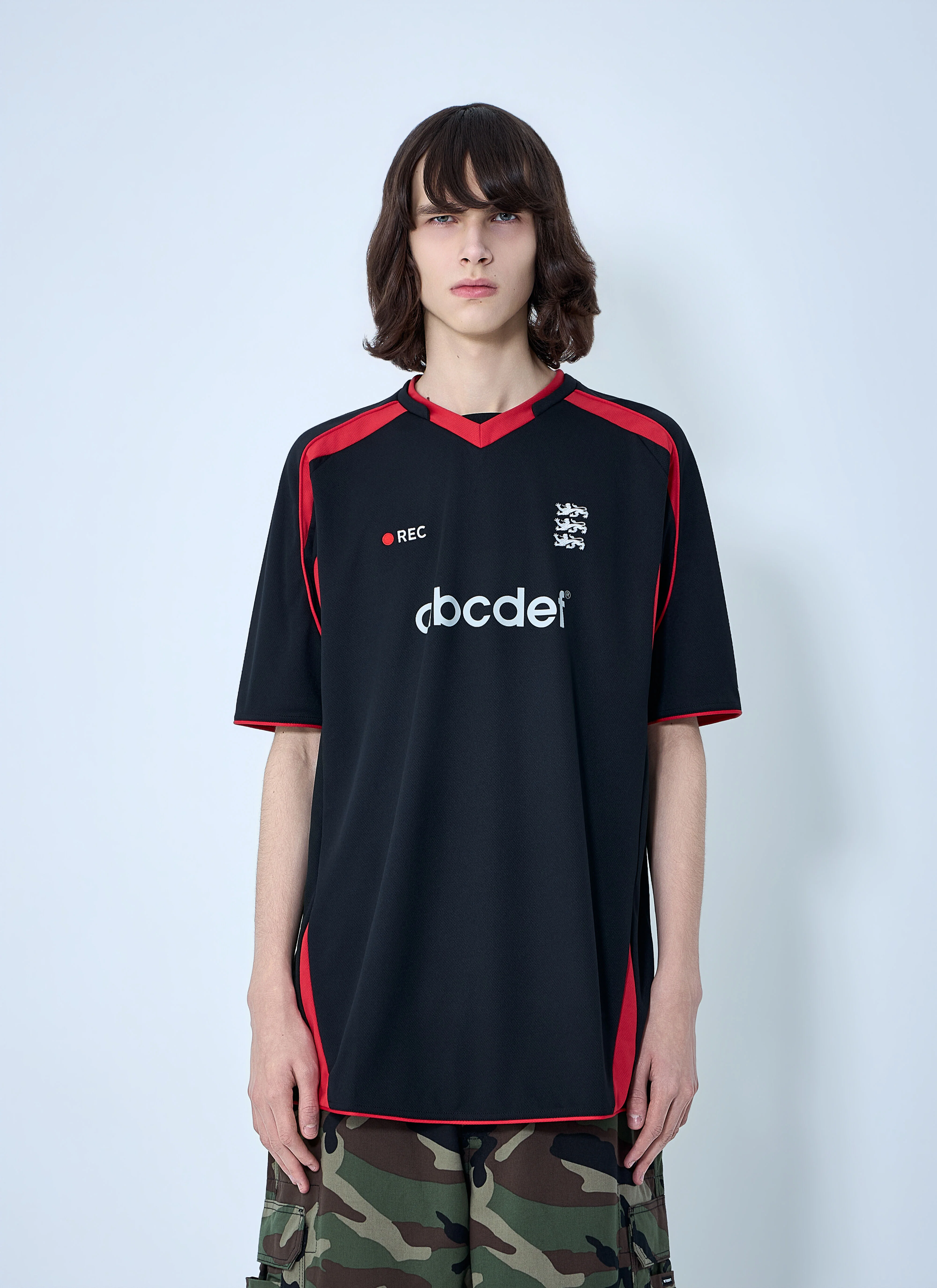 Raglan sleeve jersey with logo embroidery detail. - V-neckline - Short sleeves - Embroidered logo detail - 100% Polyester - Color: Black - Code: ME76TR268BR 1210 TECH JERSEY BLACK / RED