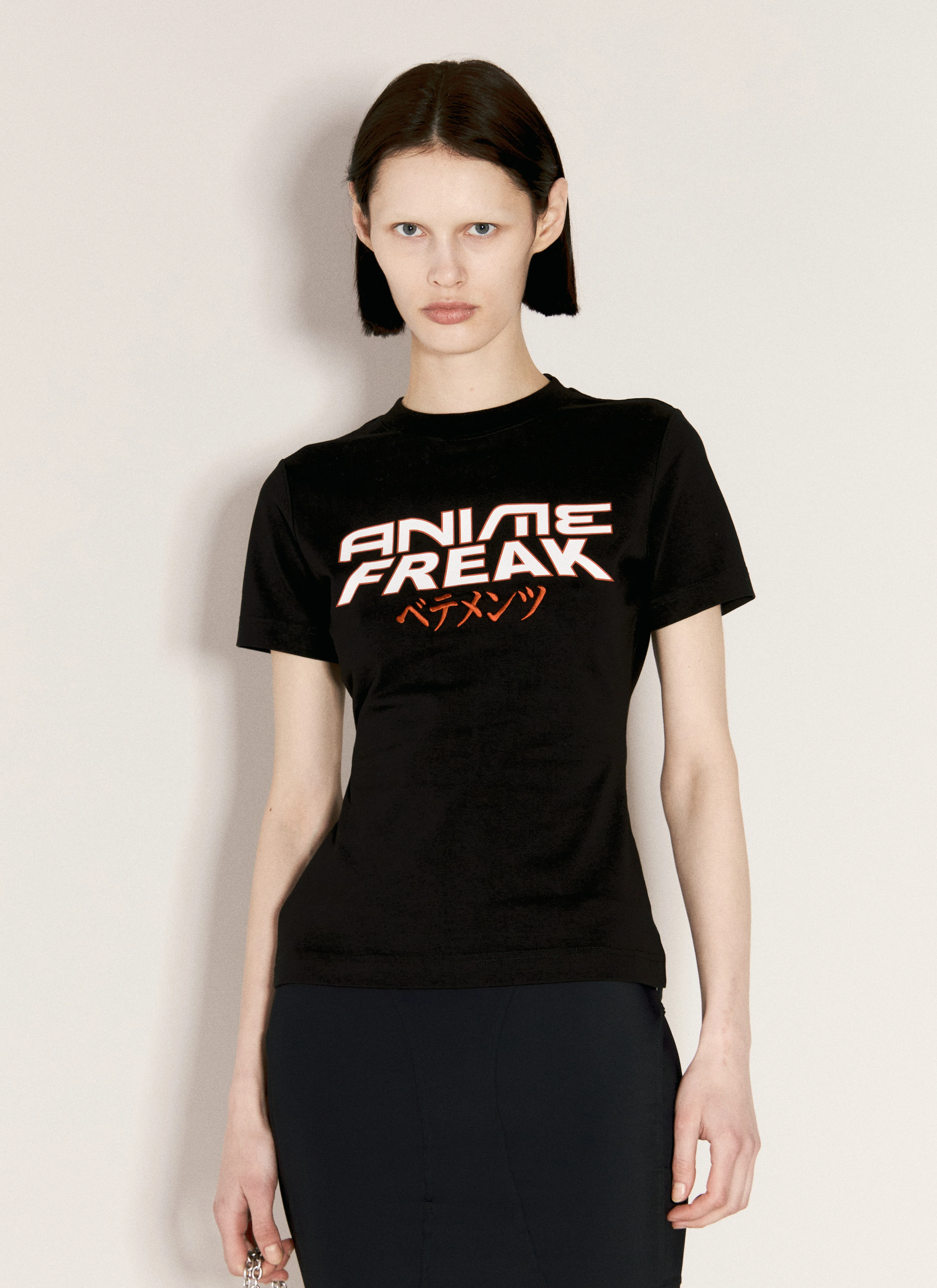 Anime Freak T-shirt in cotton-blend jersey. - Crewneck - Short sleeves - Front text print - Logo embroidery at nape - 90% Cotton, 10% Elastane. Hand wash - Color: Black - Code: WE64TR300B BLACK