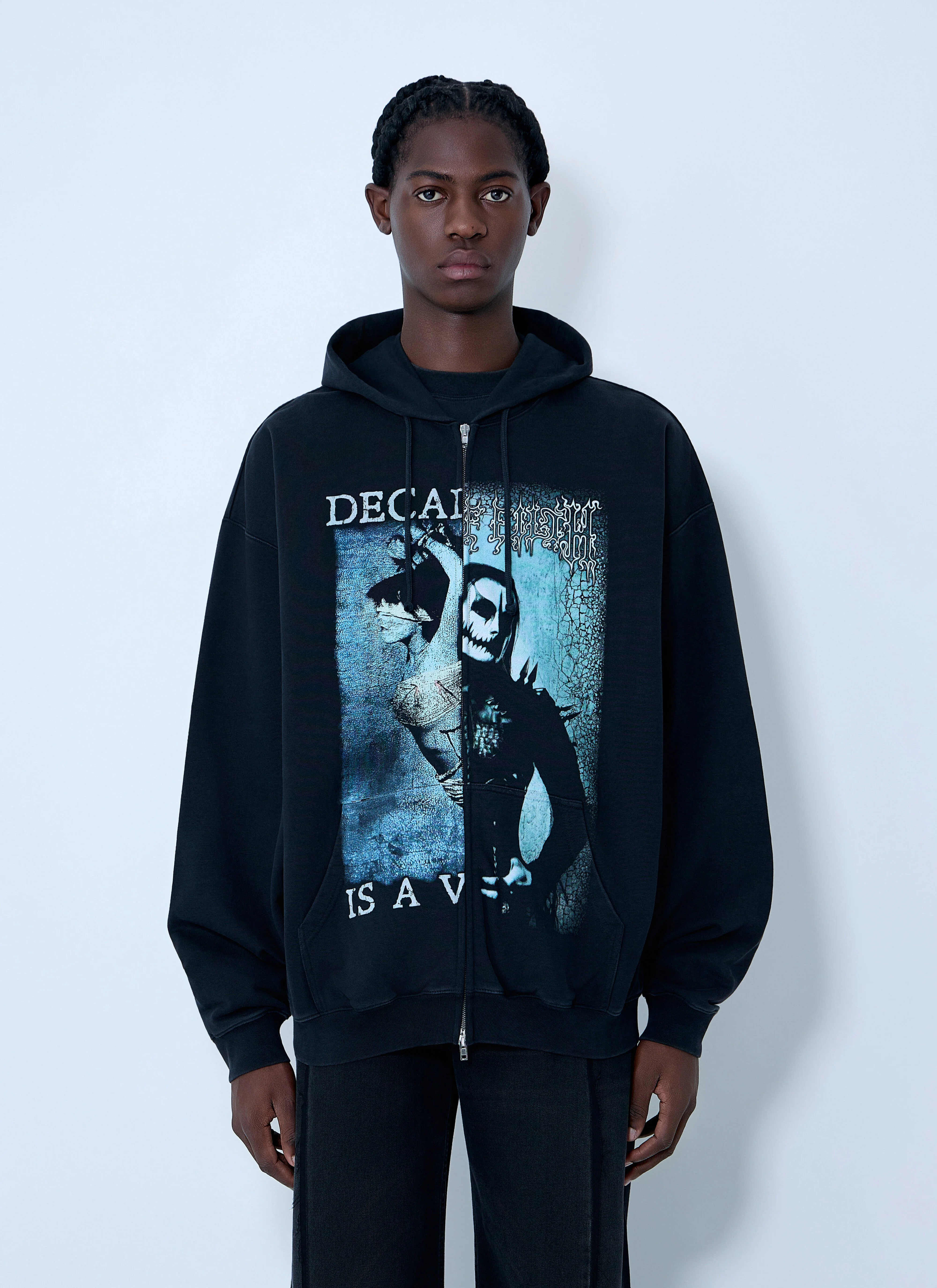 Cof Cut-up Oversized Zip-up Hoodie Black