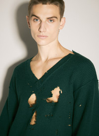 Destroyed sweater in distressed wool knit. - V neck - Long sleeves - Distressed - Ribbed trims - 100% Wool. Hand wash - Color: Green - Code: UA65KN120G GREEN
