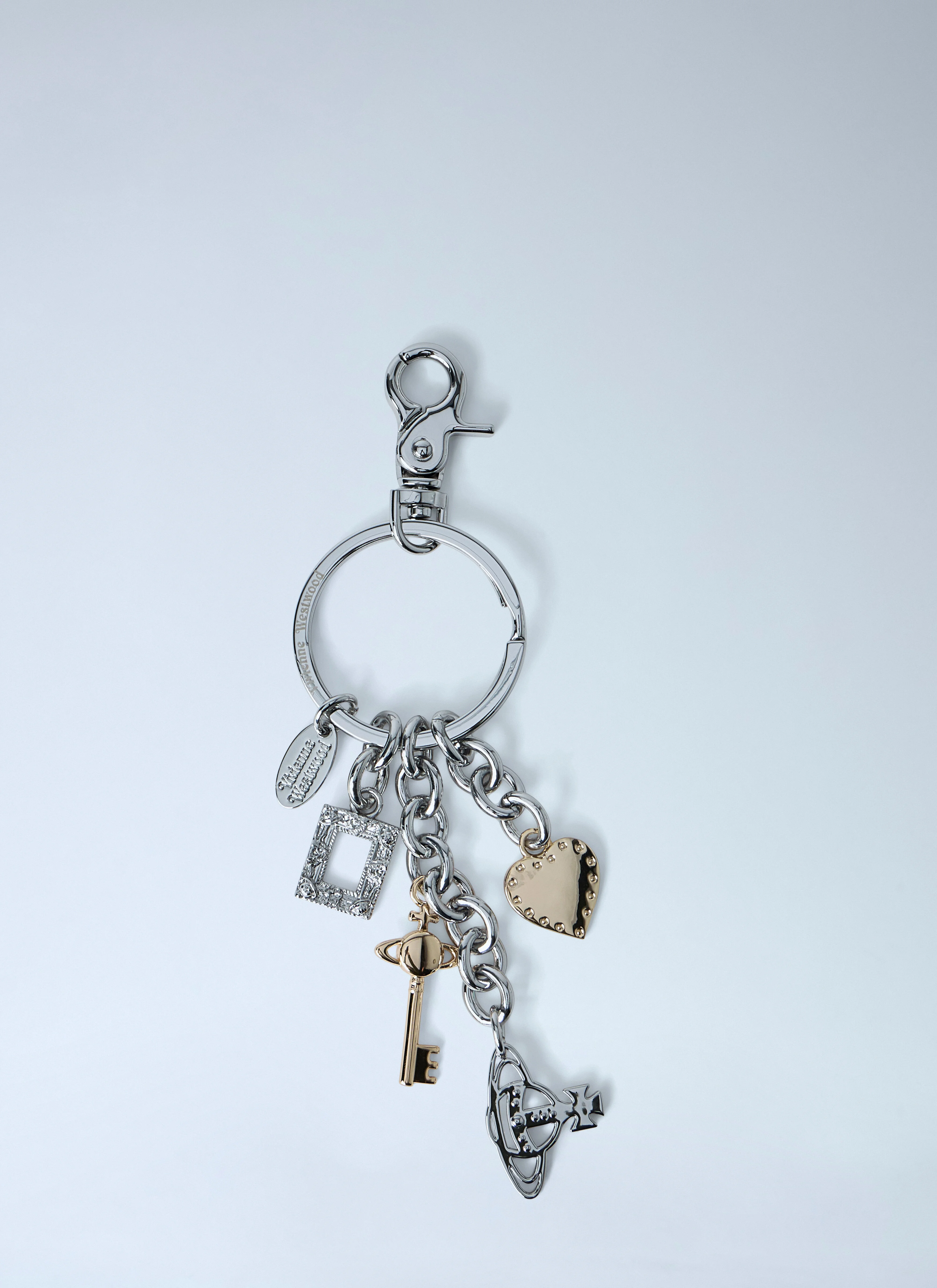 Keychain featuring mixed motif charms on chain. - Chain link construction - Lobster clasp fastening - Mixed motif charms - 100% Zamac - Color: Silver - Code: 8203012PU-OM001F-P404