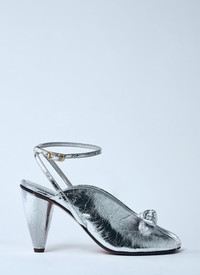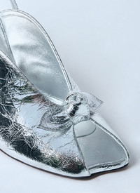Leather in crinkle metallic finish. - Open toe with bow construction - Wrap-around design with buckle fastening - Block heel - Made in Italy - 100% Leather - Color: Silver - Code: 73050002W-L00AC-Q401