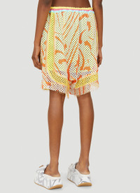 - Technical blend fabrication in a mesh weave - Drawstring waistband - Side slip pockets - Side logo embroidery - Metallic fringe appliqué - 50% Polyester, 50% Polyurethane. Dry clean - Color: Yellow - Code: 3J01000B-J0042-J306