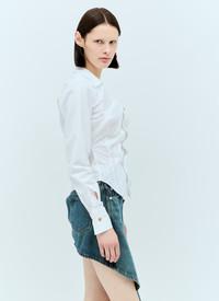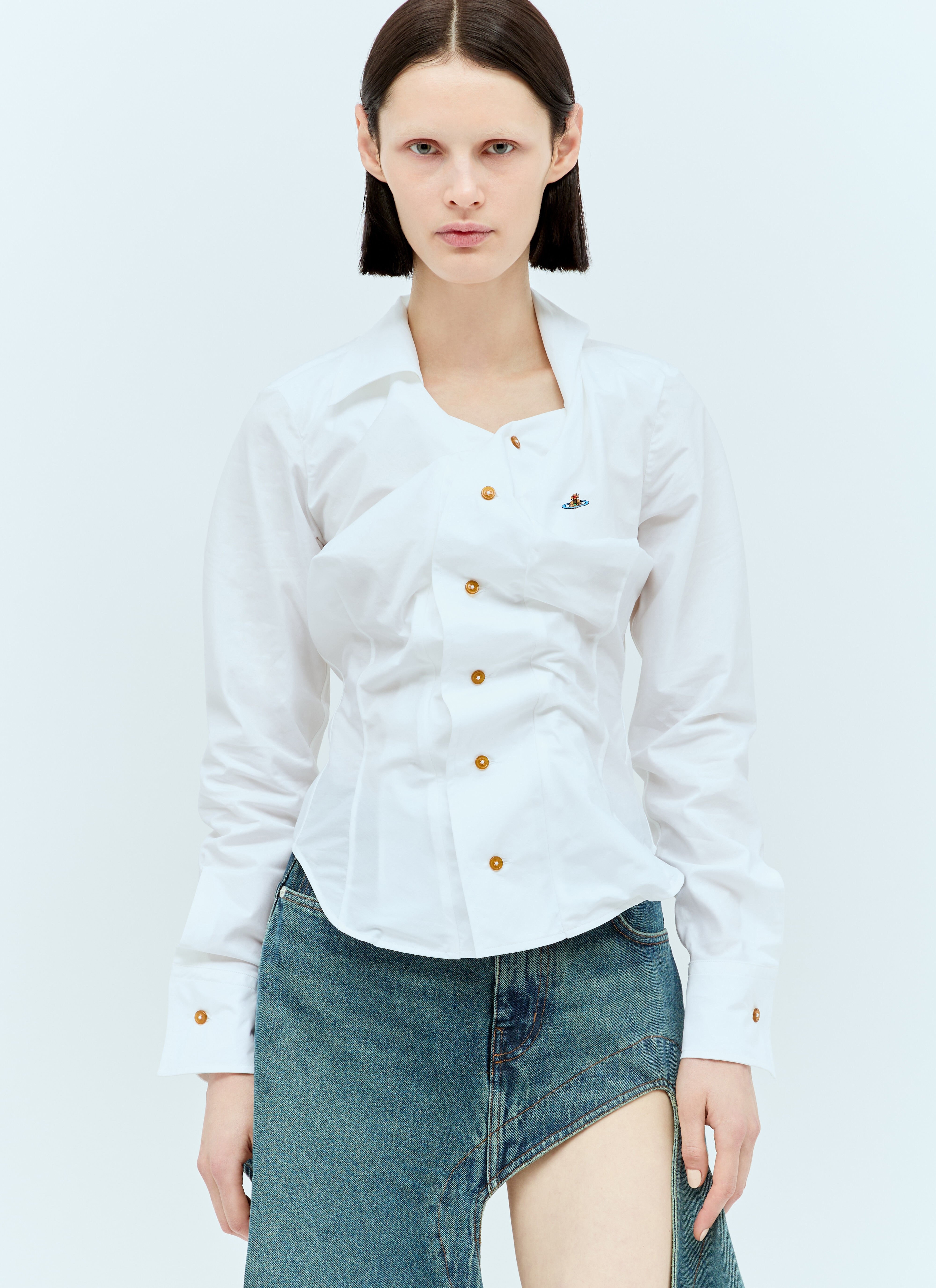 Drunken shirt with front ruched construction - Classic collar - Front button fastening - Long sleeves - Front logo embroidery - Button-fastening cuffs - Panel construction - 100% Cotton. Dry clean - Color: White - Code: 1501000C-W009Q-PIA401