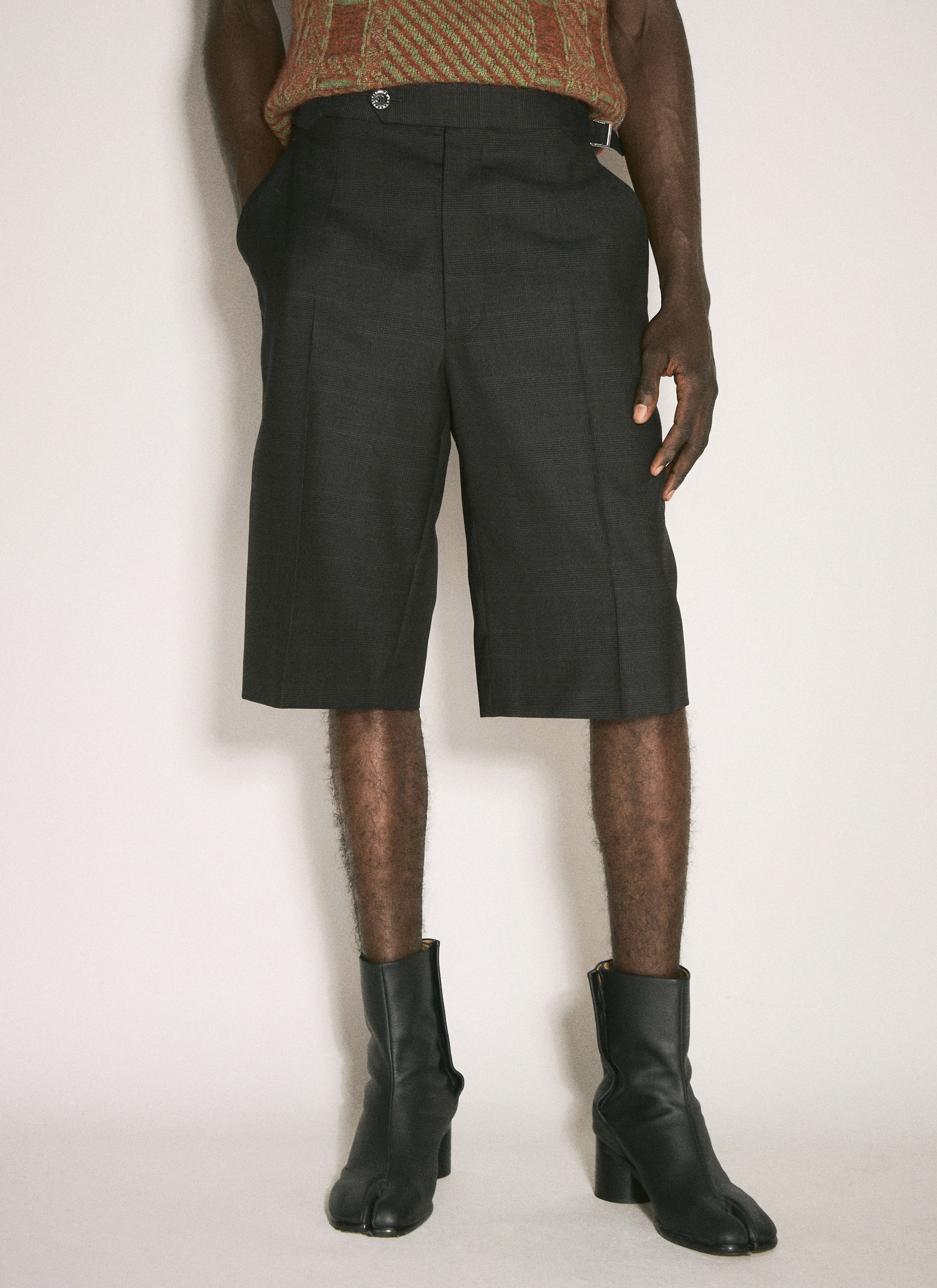 Humphrey wool shorts with check motif. - Mid rise - Top-button and button-fly fastening - Adjustable tabs at waistband - Side slip pockets - Rear slip pocket - 100% Wool. Dry clean - Color: Brown - Code: 2F01001A-W00YX-N209