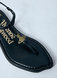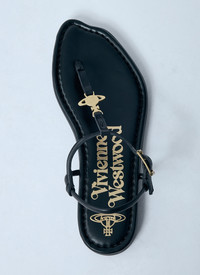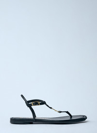 Leather sandals with front orb plaque. - Toe post - Side buckle fastening - Front orb plaque - Gold-tone hardware - 100% Leather - Color: Black - Code: 73020004W-L002M-N401