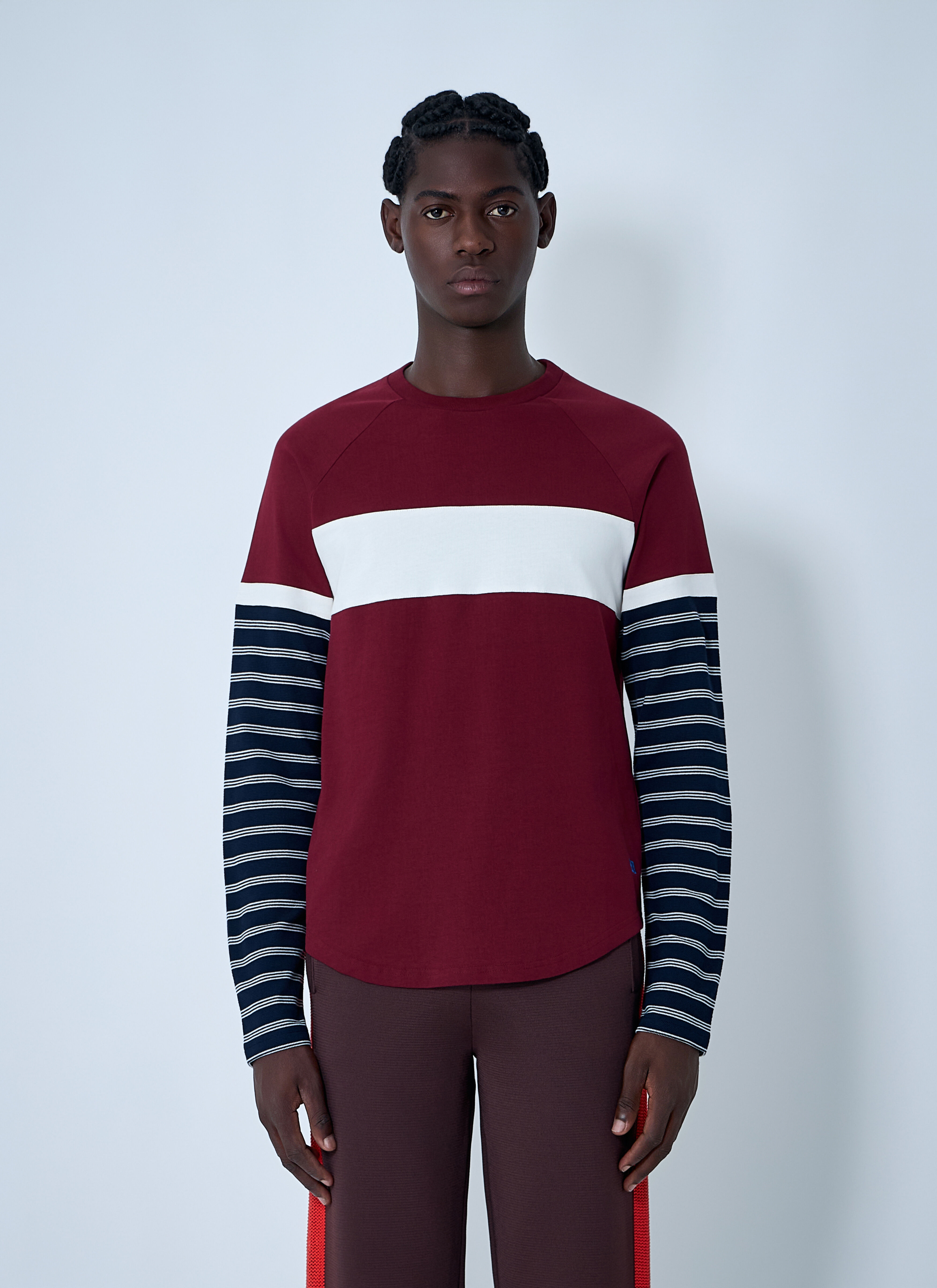 Logo motif T-shirt with constrast panels. - Crewneck - Long sleeves - Rear logo motif - 100% Cotton. Dry clean - Color: Burgundy - Code: MA25JE21-JE01-1000
