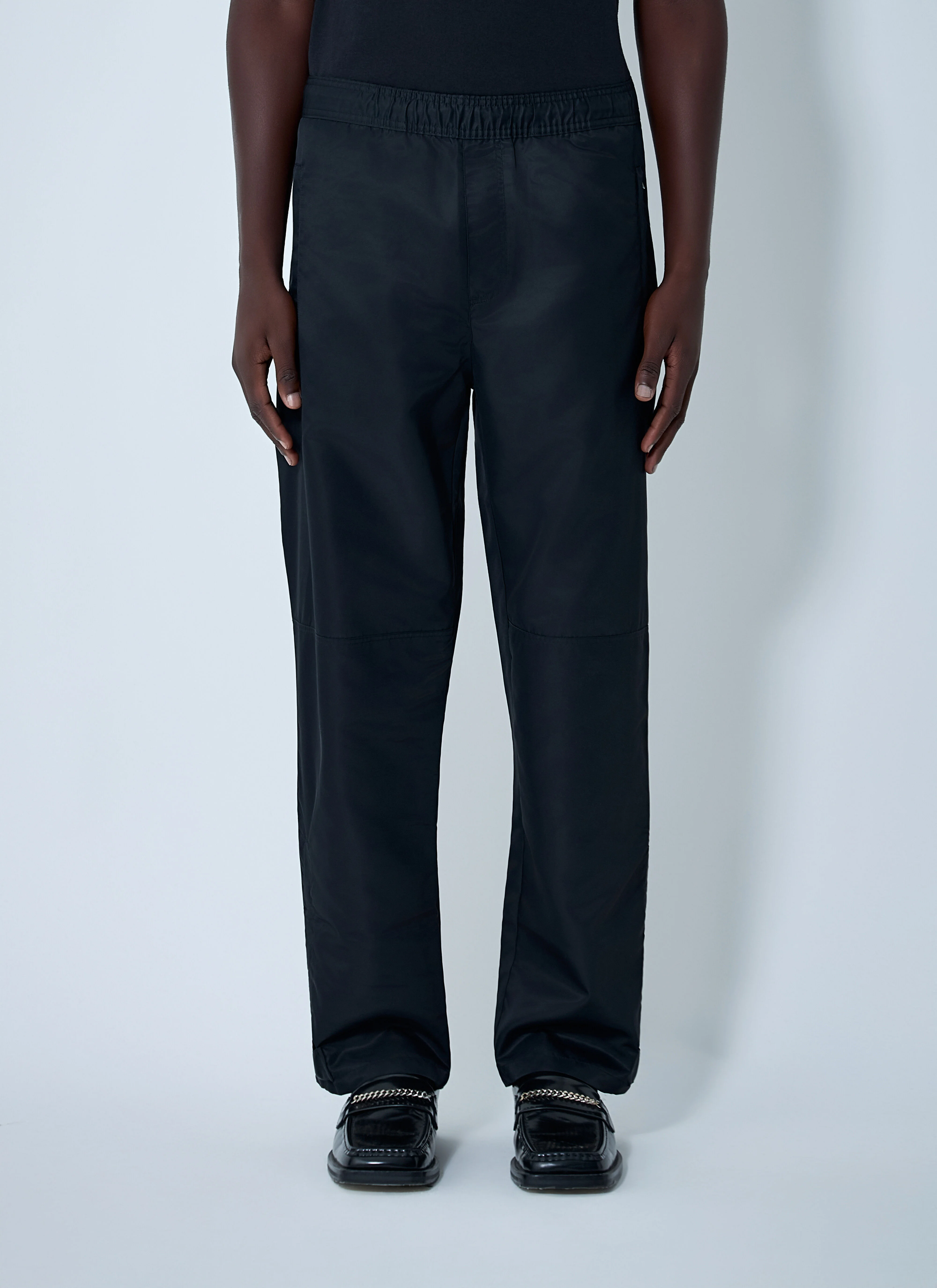 Track pants in satin twill. - Mid rise - Elasticated waistband - Side zip pockets - Front logo motif - Snap-button fastening tabs at hem - 100% Technical Fabrication Blend. Dry clean - Color: Black - Code: MA25TR02-PA01-999