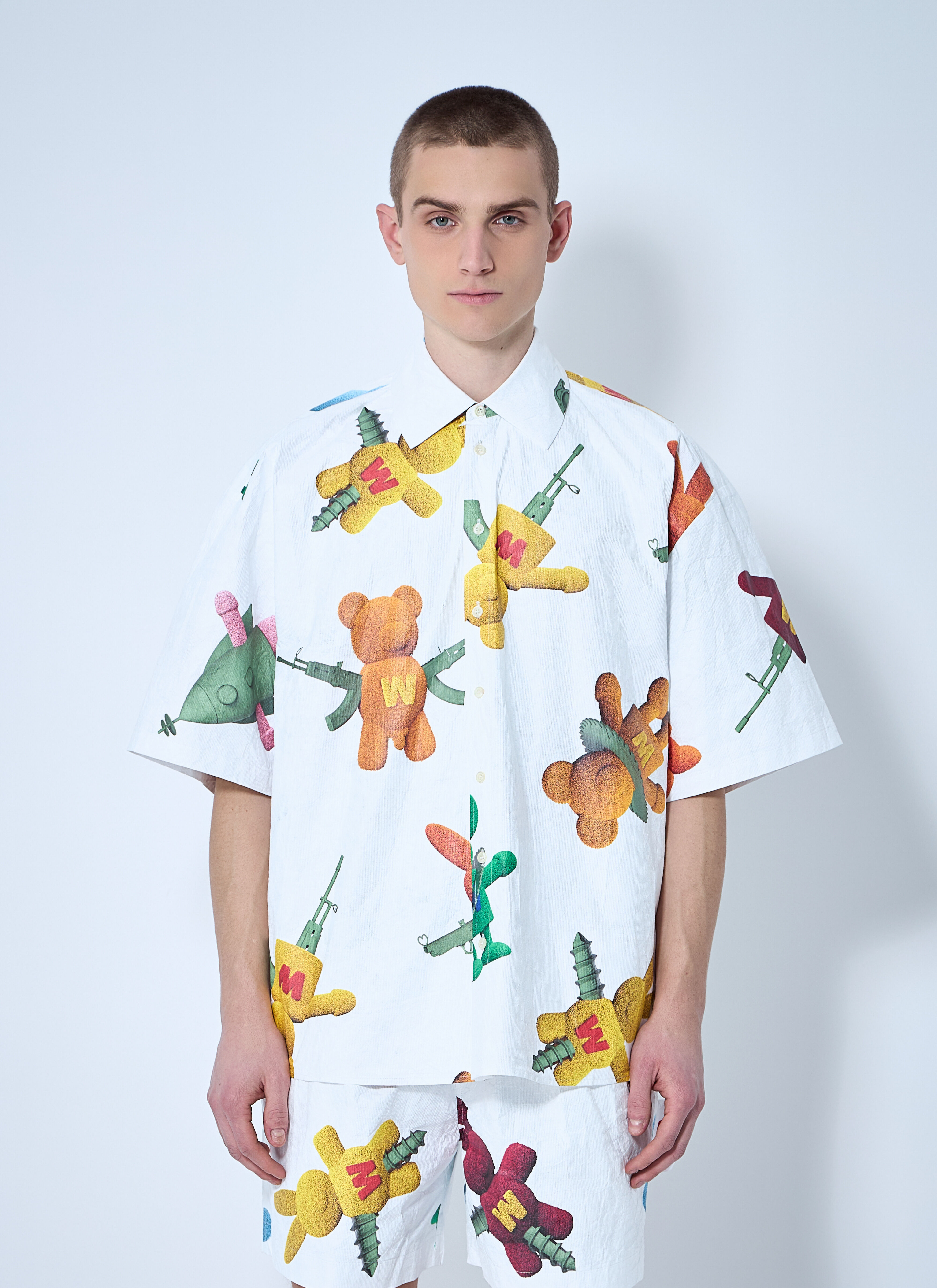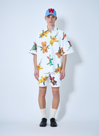 Short sleeve shirt with all-over bear and logo motif. - Classic collar - Front button fastening - Short sleeves - Side logo patch - 100% Technical Fabrication Blend. Hand wash - Color: White - Code: 6007 CC31 White
