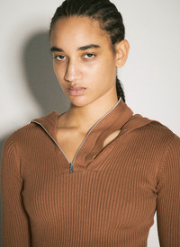Rib sweater in cotton-blend. - Asymmetric neckline with zip fastening - Logo motif at collar - Long sleeves - 80% Cotton, 20 Lycra. Hand wash - Color: Brown - Code: 106TO005 Y38