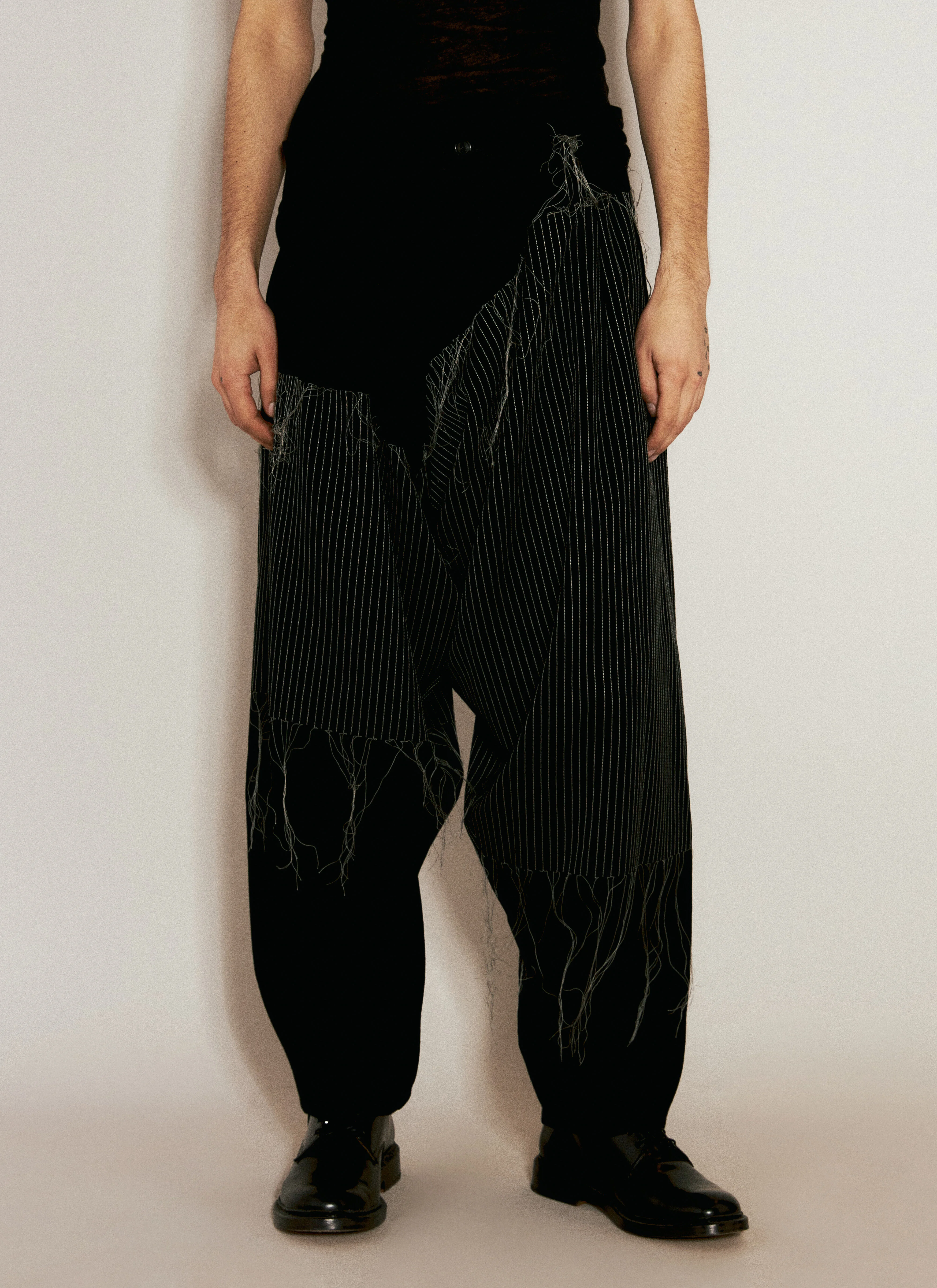 Embroidery draped pants in wool twill - Mid rise - Drawstring waistband - Top-button and zip-fly fastening - Belt loops - Side slip pockets - Rear jet pockets - Made in Japan - 100% Wool. Dry clean - Color: Black - Code: HJ-P51-106 1