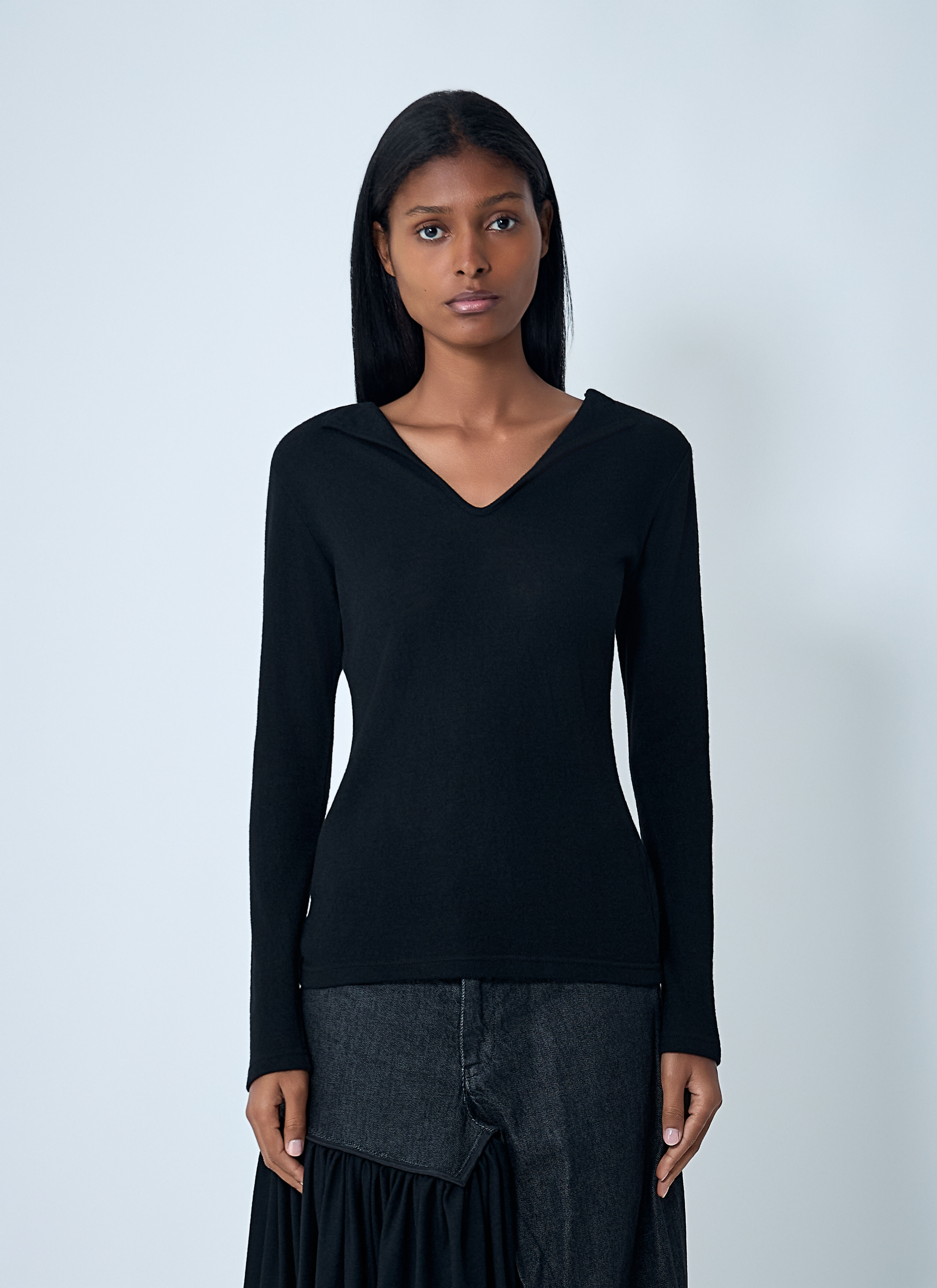 Wool sweater with rear lace-up construction. - V neck - Long sleeves - Lace-up construction - 100% Wool. Hand wash - Color: Black - Code: FL-B09-143