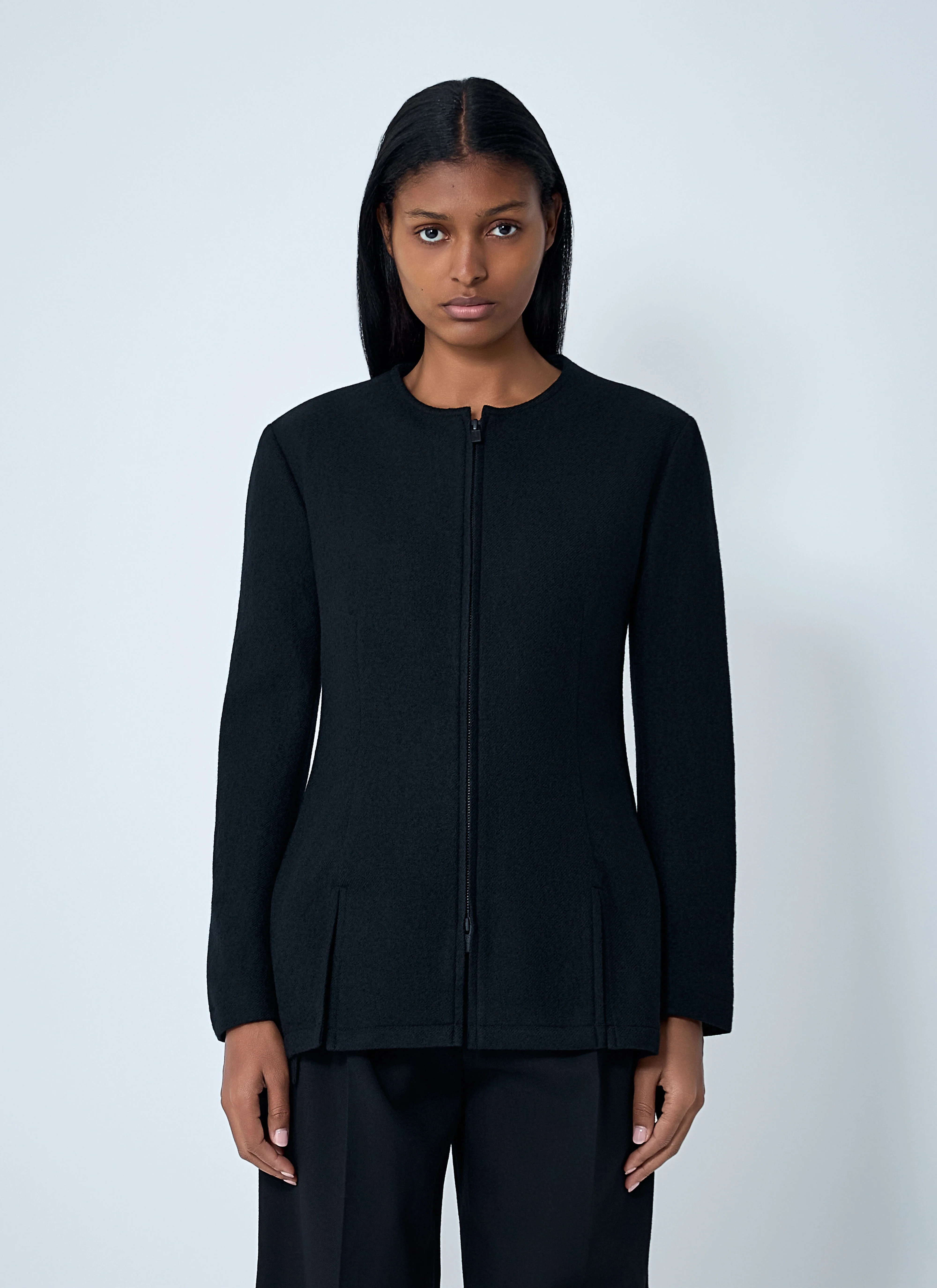 Wool-blend jacket with concealed zip fastening. - Round neckline - Long sleeves - Concealed front zip fastening - 100% Wool. Dry clean - Color: Black - Code: FL-J04-131