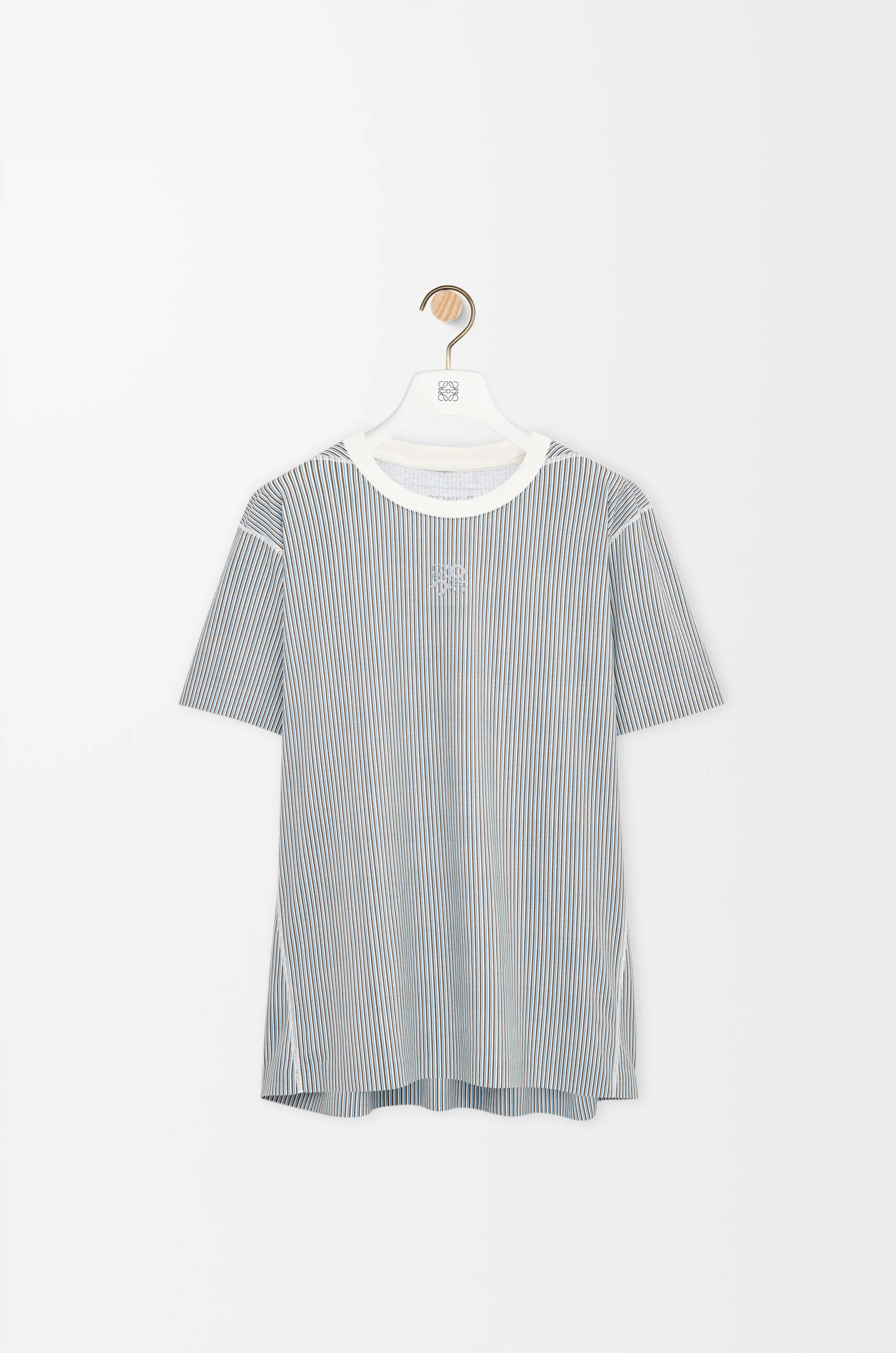 T-shirt in in medium-weight textured technical jersey with breathable moisture-wicking properties and odour control finishing featuring a digital stripe print. - Regular fit, regular length - Contrast crew neck - Reflective Anagram On print placed at the front - Reflective LOEWE On print placed at the back Colour: Beige/Blue Main material: Polyester Weight: 0.2 kg Materials & care Main Material: 100% polyester