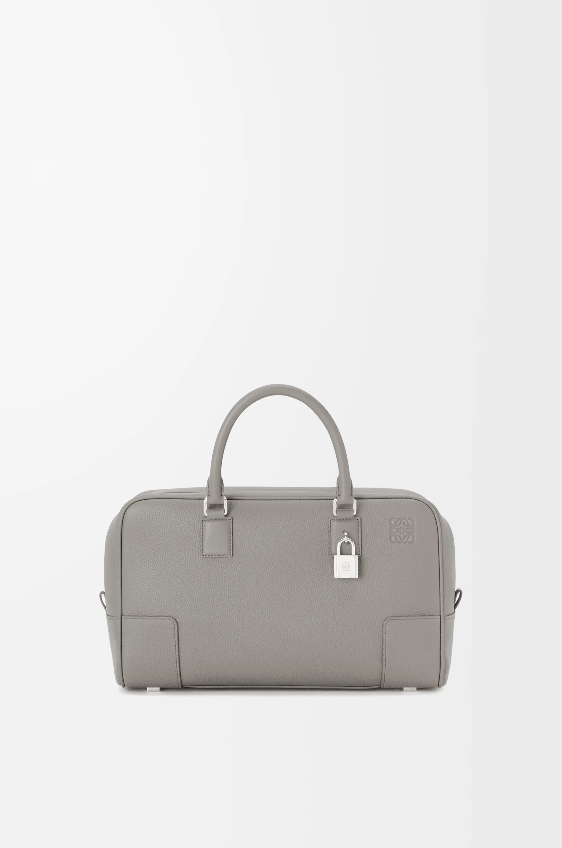The Amazona is a LOEWE icon originally launched in the 1970s as a top handle soft bag. Now updated with refined proportions and exquisitely crafted details including an Anagram engraved padlock. This version is crafted in soft grained calfskin. - Shoulder, crossbody or top handle carry - Detachable and adjustable strap - Double zip closure - Calfskin zip pulls - Internal zipped compartment and slip pocket with press stud fastening - Mini pocket for padlock key - Protective metal feet on base - Customisable with strap and personalised charms - Gold suede lining - Embossed Anagram Details - Colour: Pearl Grey - Metallic colour: Palladium - Main material: Soft Grained Calf - Strap length: 85 - 113 cm - Handle drop: 10 cm - Weight: 0.69 kg - Height (cm): 18 - Width (cm): 28 - Depth (cm): 11 - Height (inch): 7.1 - Width (inch): 11 - Depth (inch): 4.3 - Model ID: A039N08X08 - CIL: 0010797348 - Made in: Spain