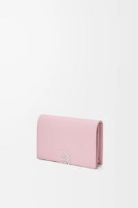 Business cardholder in pebble grained calfskin. - One main compartment, one card slot - Snap button closure - Calfskin lining - Gold or silver-finish metal Anagram Colour: Blossom Metallic colour: Palladium Main material: Pebble grain calf Weight: 0.05 kg Height: 7 cm Width: 10.8 cm Depth: 2 cm Made in: Spain