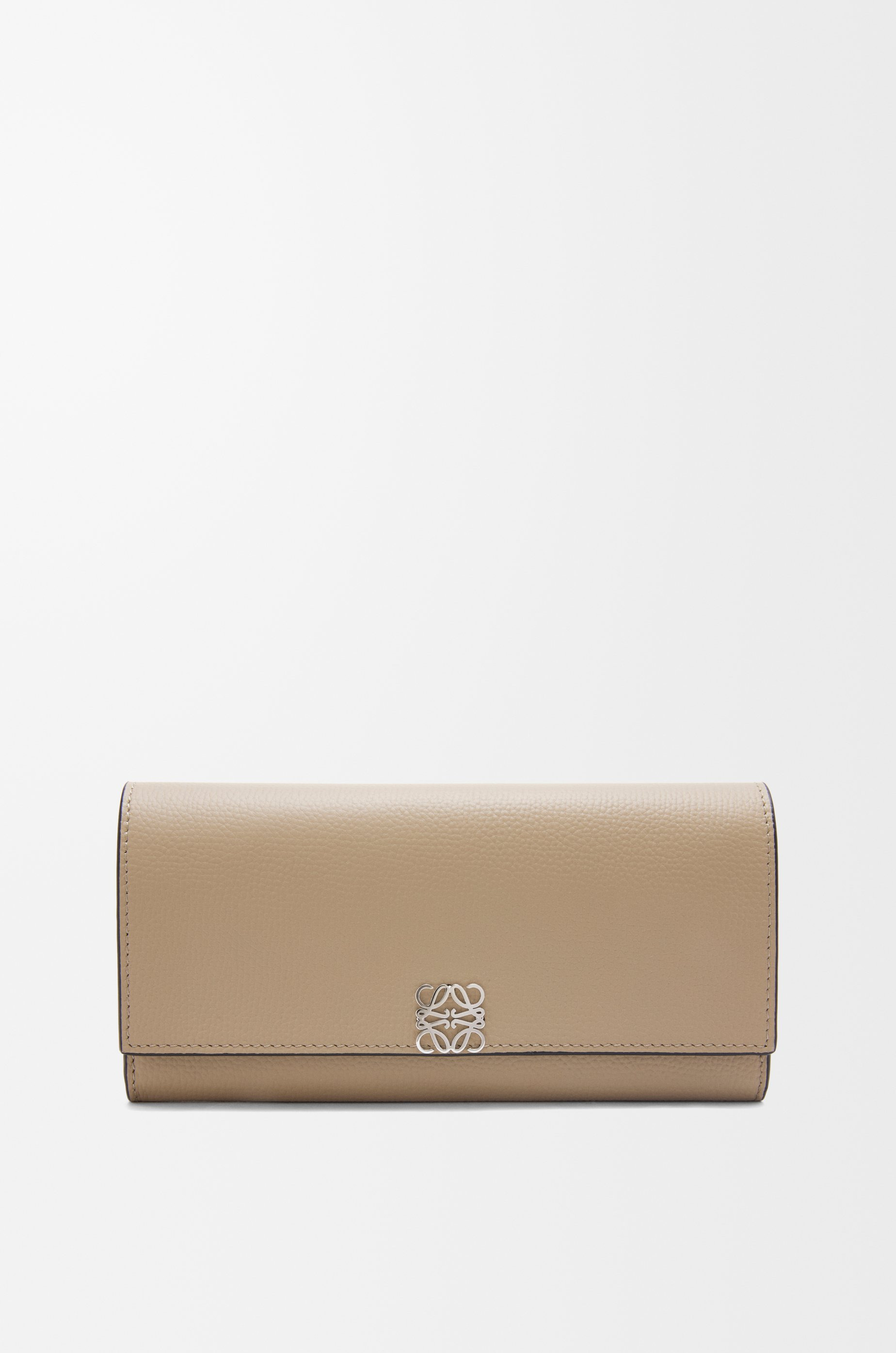 Continental wallet in pebble grained calfskin. - One external zipped pocket, ten card slots, two large note pockets - One zipped coin compartment - Snap button closure - Silver-finish metal Anagram Colour: Sand Metallic colour: Palladium Main material: Pebble Grain Calf Weight: 0.18 kg Height: 10 cm Width: 20 cm Depth: 2.5 cm Made in: Spain