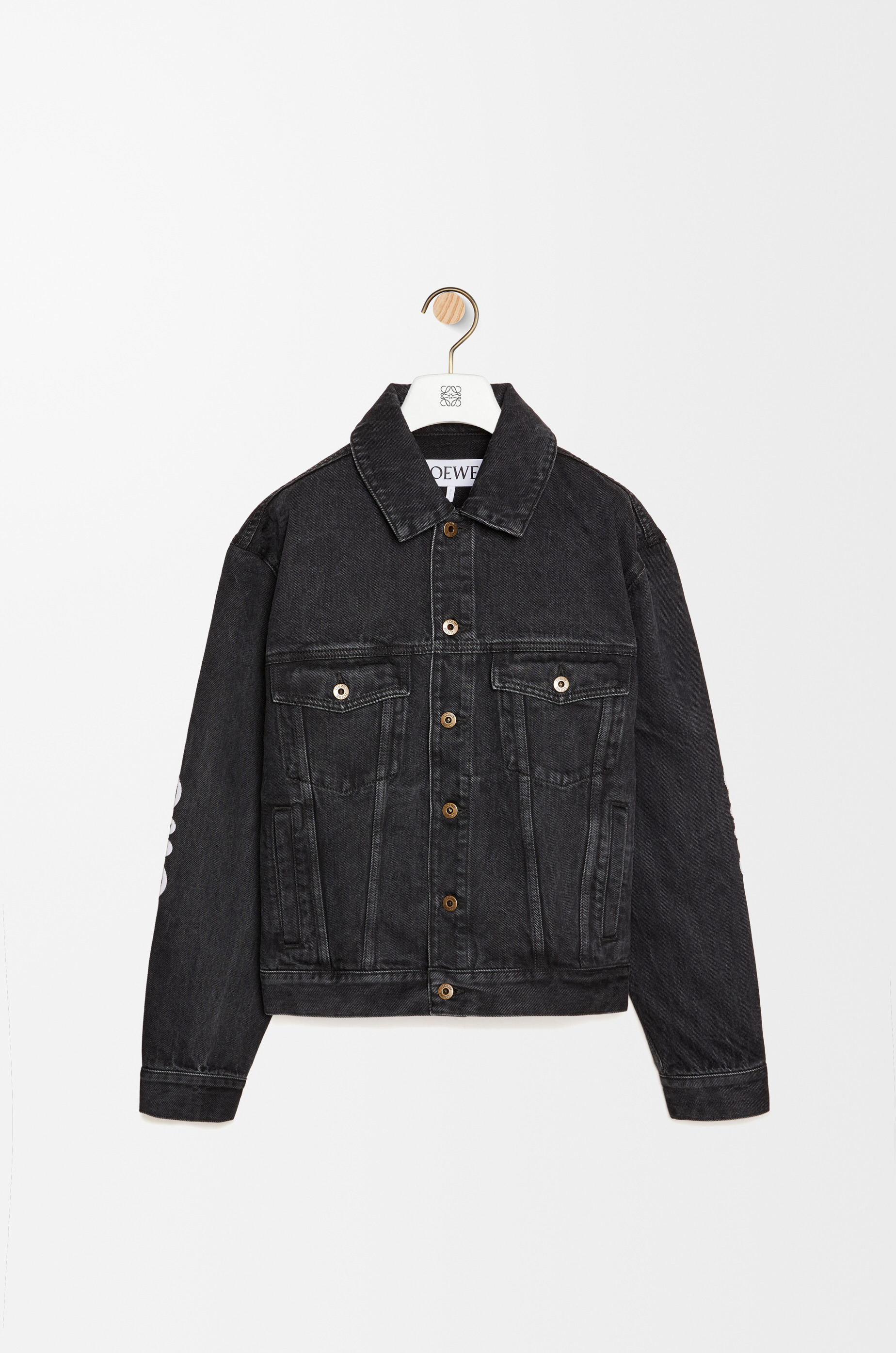 Jacket crafted in medium-weight washed cotton denim. - Regular fit - Regular length - Anagram cut-outs at the elbows - Classic collar - Buttoned cuffs - Button front fastening - Buttoned chest flap pockets - Welt pockets - LOEWE embossed leather patch at the back Details - Colour: Black - Main material: Cotton - Weight: 1.0 kg - Model ID: H526Y50W26 - Made in: Italy