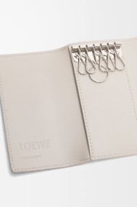 Key case in pebble grain calfskin. - 6 metal key hooks - Anagram snap button closure - Calfskin lining Details - Colour: Light Ghost - Metallic colour: Palladium - Main material: Pebble Grain Calf - Weight: 0.06 kg - Volume: SS24 Permanent - Height (cm): 7 - Width (cm): 12 - Depth (cm): 2.5 - Height (inch): 2.8 - Width (inch): 4.7 - Depth (inch): 1 - Model ID: C821K92X01 - CIL: 0010968006 - Made in: Spain