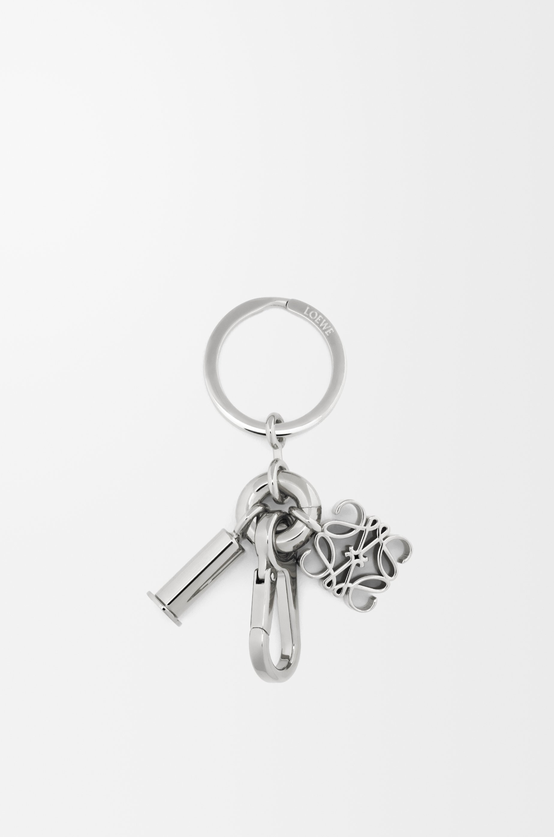 Anagram personalisation keyring in brass with a hoop fastening. - Engraved LOEWE Details - Colour: Silver - Metallic colour: Palladium - Main material: Brass - Weight: 0.03 kg - Volume: SS24 W's Spring Drop 1 - Width (cm): 8 - Depth (cm): 4 - Width (inch): 3.1 - Depth (inch): 1.6 - Model ID: C554231X33 - CIL: 0010969103 - Made in: Spain