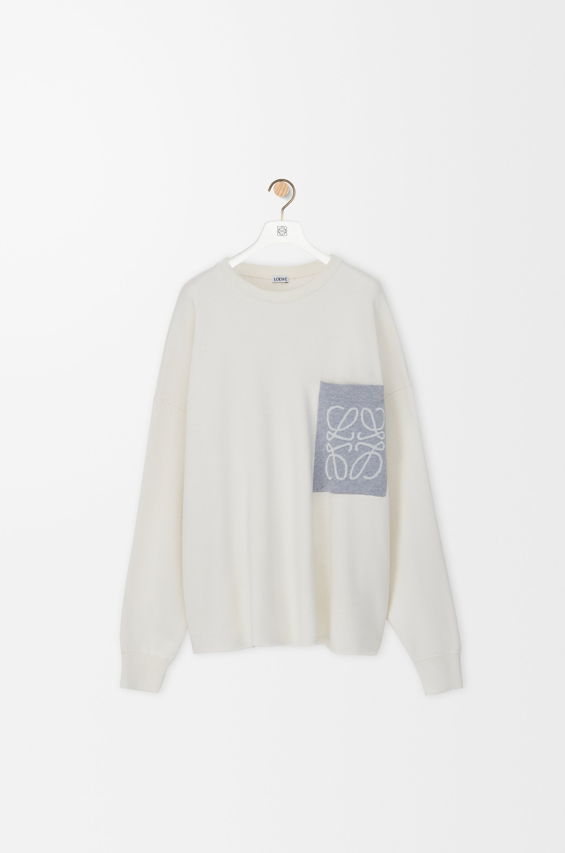 Sweater in medium-weight cotton blend featuring an Anagram intarsia on the chest patch pocket. - Relaxed fit, regular length - Double face stitch - Round neck - Ribbed collar and cuffs - Self-start hem Colour: Beige/Grey Main material: Cotton/Viscose Weight: 1.056 kg Made in: Italy Materials & care Main Material: 49% cotton 42% viscose 9% polyamide