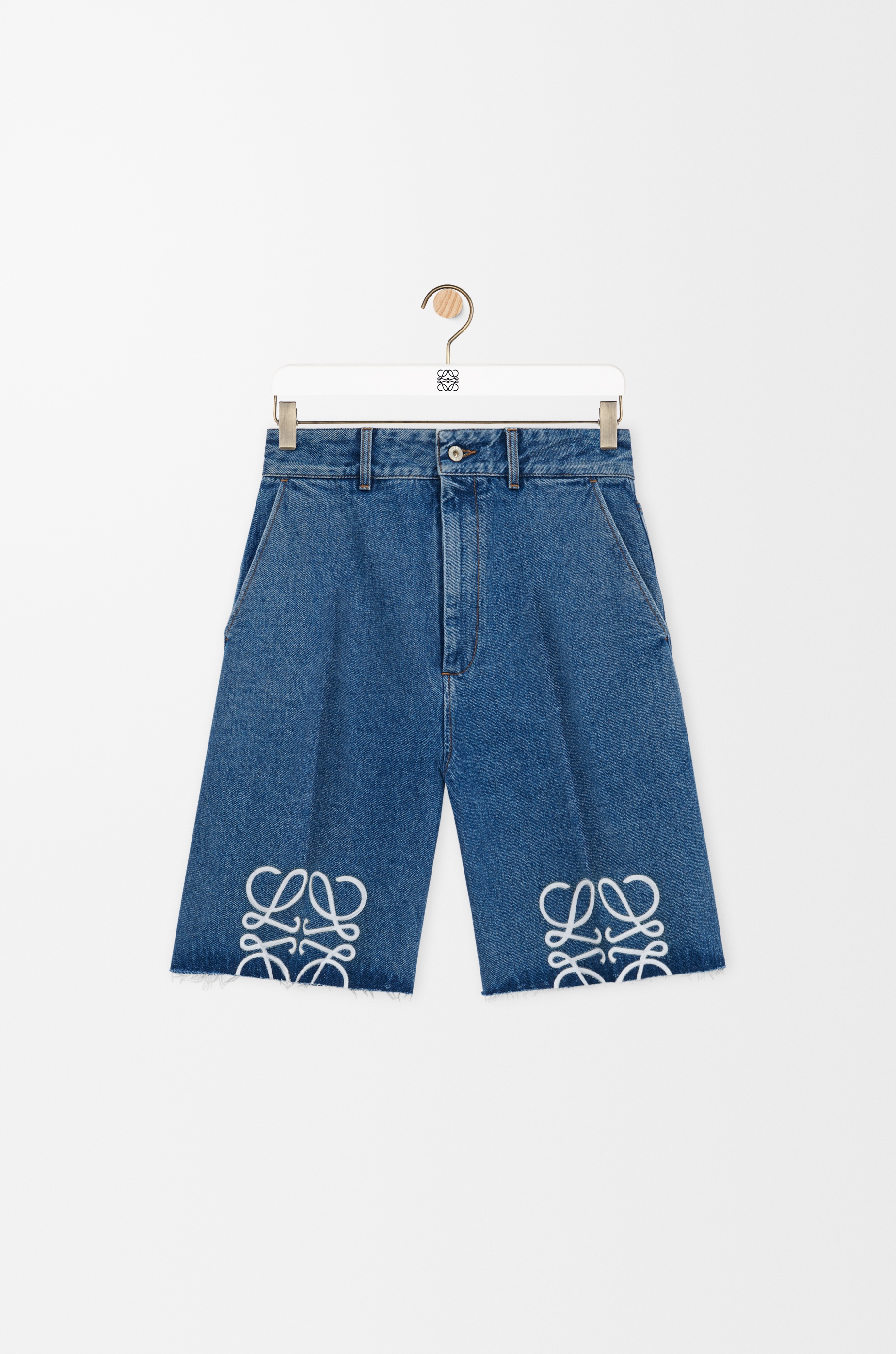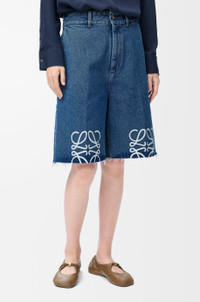 Shorts crafted in medium-weight washed cotton denim. - Regular fit - Knee length - Mid waist - Frayed hem with visible lining - Contrast Anagram cut-out on the knees - Belt loops - Concealed zip fly - Side pockets - Low rear patch pockets - LOEWE embossed leather patch placed at the back Details - Colour: Jeans Blue - Main material: Coton - Weight: 0.7 kg - Model ID: S359Y11XB9 - Made in: Italy