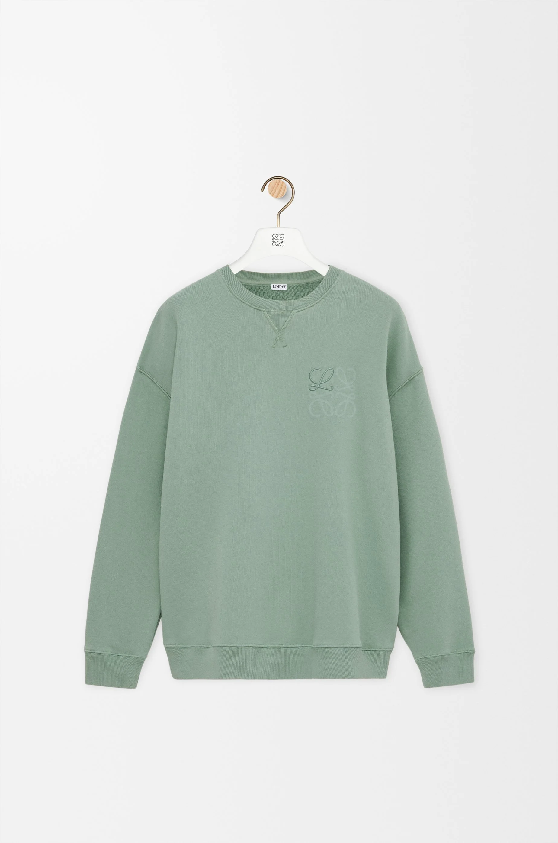 Sweatshirt in medium-weight loopback cotton fleece featuring an embroidered and laser printed Anagram on the chest. - Relaxed fit, regular length - Crew neck - Ribbed collar, cuffs and hem - V stitch detail at the front Colour: Sage Main material: Cotton Weight: 0.64 kg Made in: Portugal Materials & care Main Material: 100% cotton