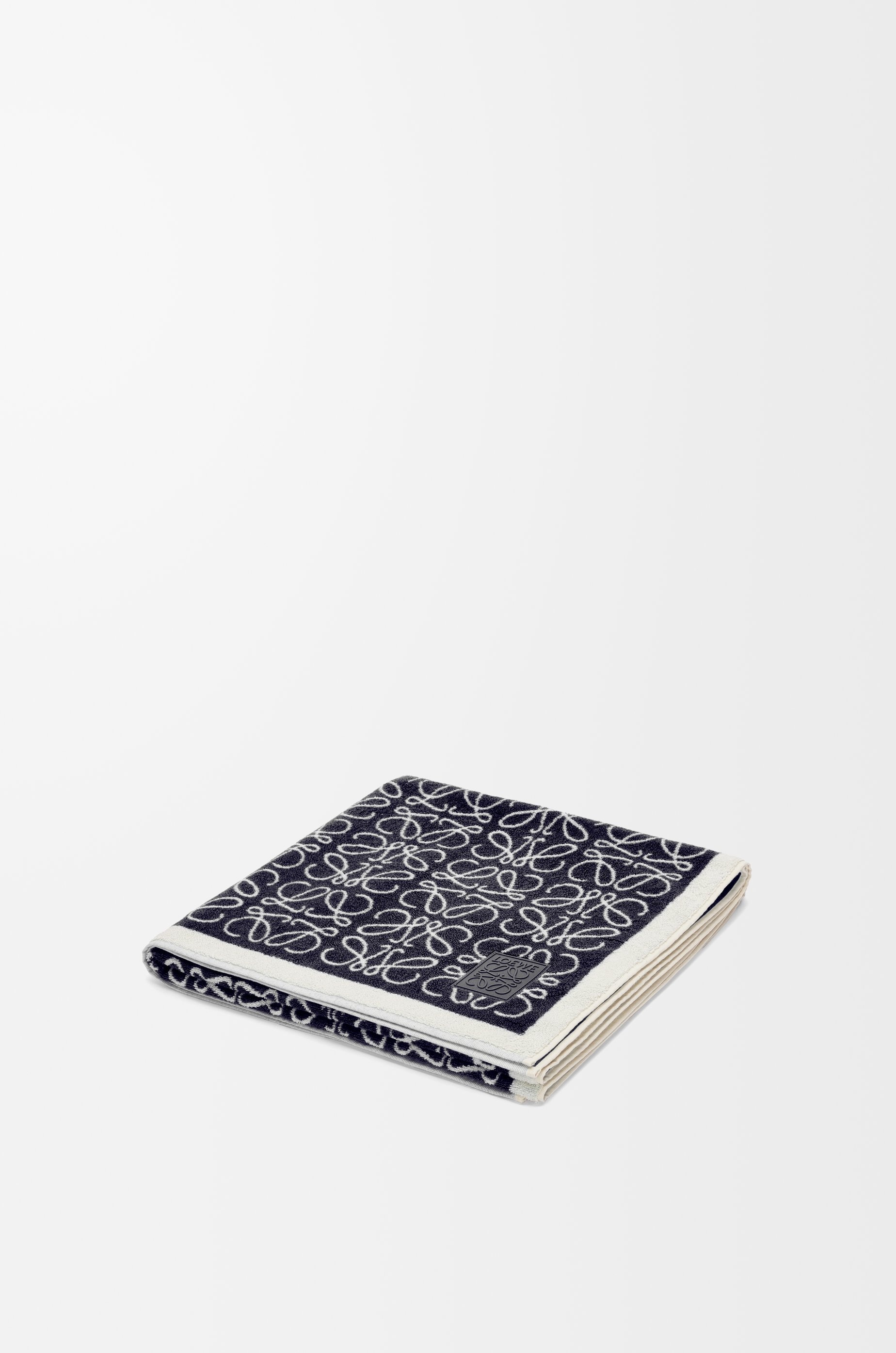 Towel in cotton with an all-over repeat Anagram pattern. - LOEWE Anagram silicon patch - 95cm x 170cm Details - Colour: Navy Blue - Main material: Cotton - Weight: 1.021 kg - Height (cm): 185 - Width (cm): 95 - Height (inch): 72.8 - Width (inch): 37.4 - Model ID: K000229X14 - CIL: 0010861250 - Made in: Italy