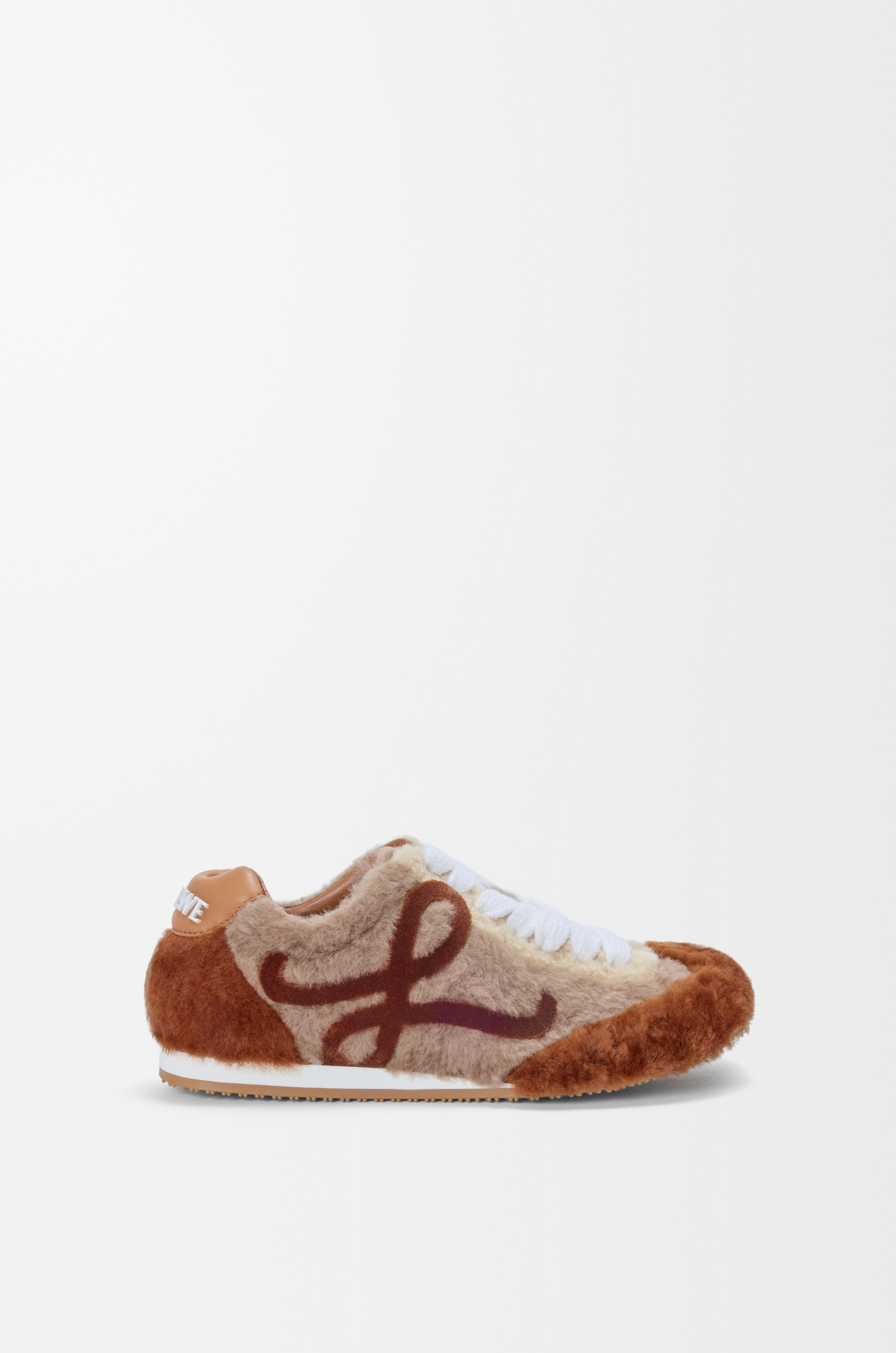 Sneaker in shearling featuring an asymmetrical toe shape, a sock-like internal structure and a lightweight rubber outsole that extends to the toecap. - 20mm heel - Comes with double laces - L monogram at the side, embossed Anagram on the tongue - Injected rubber LOEWE on the heel tab Colour: Tan Multitone Main material: Shearling Weight: 0.8 kg Made in: Italy