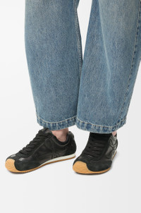 Sneaker in soft calfskin featuring an asymmetrical toe shape, a sock-like internal structure and a lightweight rubber outsole that extends to the toecap. - 20mm heel - Comes with double laces - L monogram at the side, embossed Anagram on the tongue - Injected rubber LOEWE on the heel tab Details - Colour : Black - Main material : Soft Calf - Heel height : 2 - Weight : 0.8 kg - Model ID : LLBR282X03 - Made in : Italy