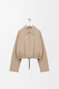 Jacket in lightweight cotton twill featuring a balloon silhouette with an adjustable leather drawstring hem. - Relaxed fit, regular length - Classic collar - Zip front fastening with a leather puller and placket - Raglan sleeves - Full check lining - LOEWE Anagram embossed leather patch placed at the back Details - Colour : Beige - Main material : Cotton - Weight : 0.9 kg - Model ID : S359Y02XDH - Made in : Italy