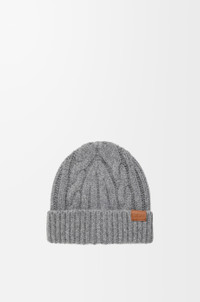 Beanie in medium-weight cable knit wool. - Regular length - Ribbed turn-up cuff - LOEWE embossed leather tab placed at the edge Colour: Grey Melange Main material: Wool Weight: 0.12 kg Made in: United Kingdom