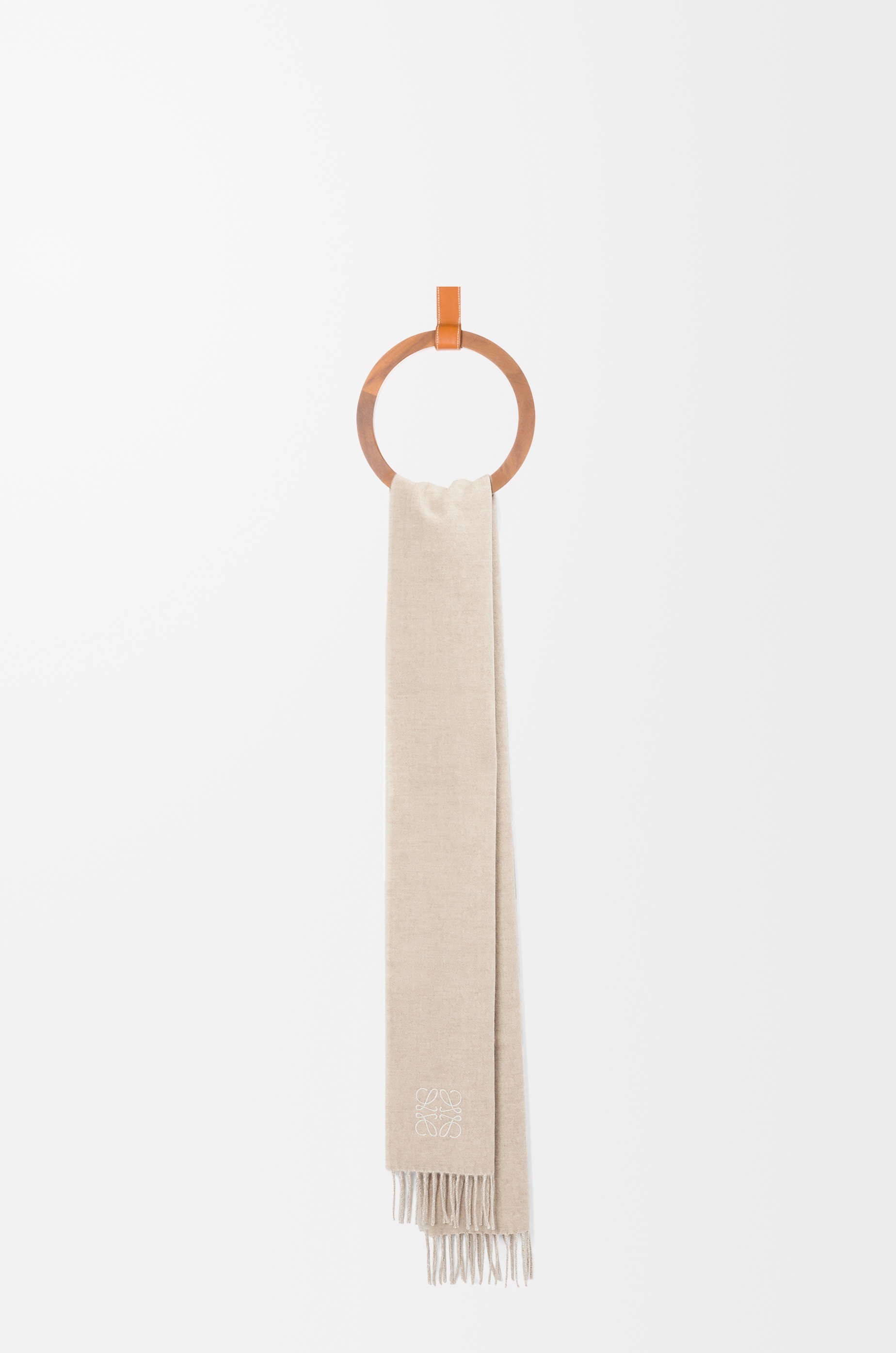 Bicolour scarf crafted in medium-weigth double face wool and cashmere blend. - 28cm x 180cm - Fringed edges - Anagram embroidery placed on the corner Details - Colour: Ivory/Sand - Metallic colour: Palladium - Main material: Wool/Cashmere - Weight: 0.146 kg - Height (cm): 180 - Width (cm): 28 - Height (inch): 70.9 - Width (inch): 11 - Model ID: F810250X01 - CIL: 0010493674 - Made in: United Kingdom