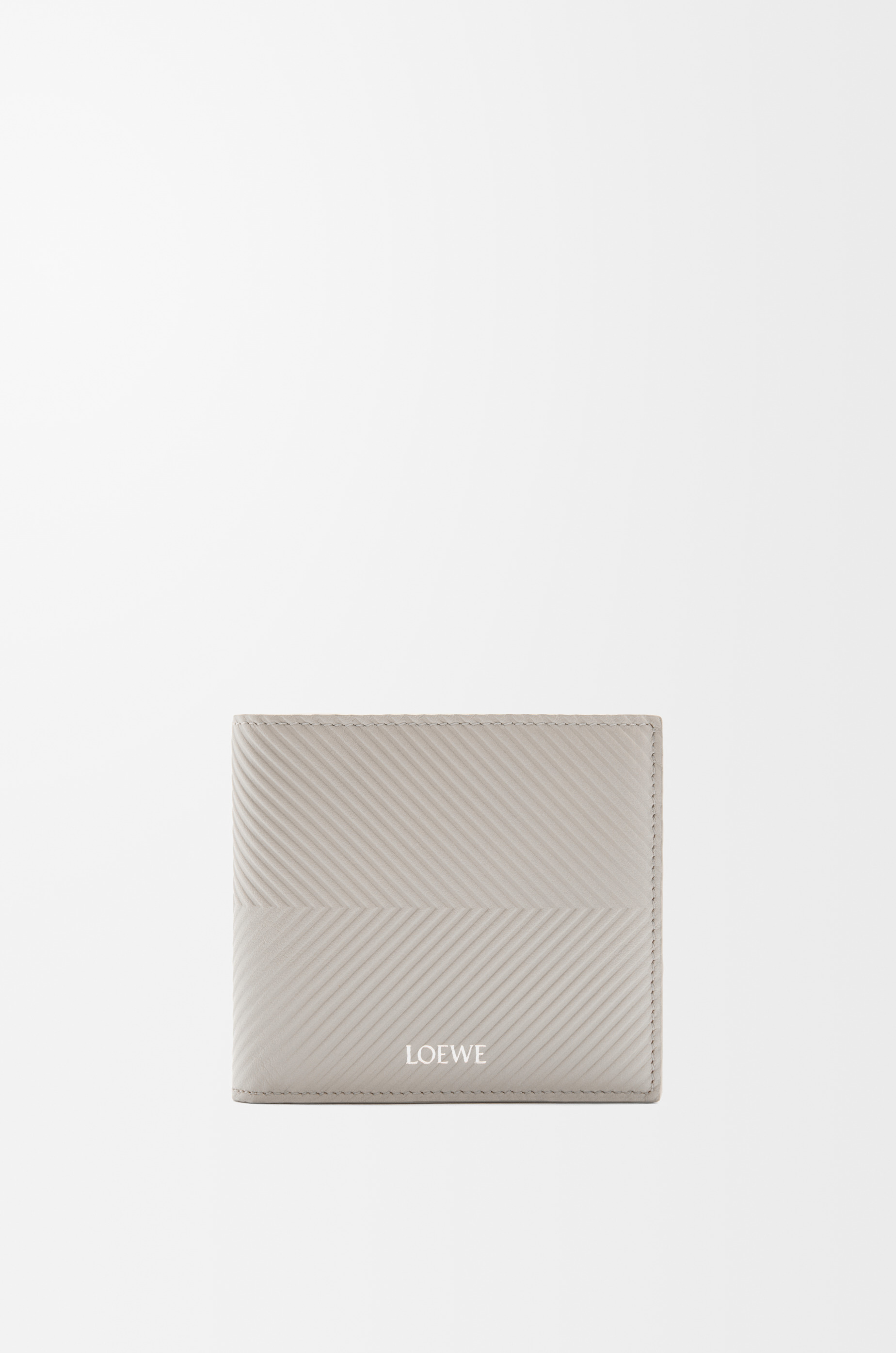 Bifold coin wallet in classic calfskin embossed with a chevron pattern. - Four card slots, two large note pockets - One coin compartment with snap button closure - Calfskin lining - Silver embossed LOEWE Details - Colour : Shell Grey - Metallic colour : Palladium - Main material : Classic Calf - Weight : 0.08 kg - Height (cm) : 9.8 - Width (cm) : 11 - Depth (cm) : 2 - Height (inch) : 3.9 - Width (inch) : 4.3 - Depth (inch) : 0.8 - Model ID : C779501X01 - CIL : - 0011248382 - Made in : Spain