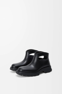 Bootie in vegetable-tanned calfskin featuring a handle cut-out, a workwear-inspired reinforced toe, a chunky two-piece sole and a leather-covered welt. - 45mm heel - Embossed Anagram on the heel, moulded LOEWE on the sole Colour: Black Main material: Vegetal calf Weight: 1.5 kg Made in: Italy