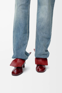 Ankle boot in eel with a distinctive toe shape and two side zips to allow for versatile styling. - 75mm leather-wrapped heel - LOEWE engraved zip pullers Colour: Burgundy Main material: Eel Weight: 0.7 kg Made in: Italy