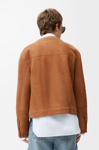 Cardigan in lightweight curly merino shearling. - Regular fit, regular length - V-neck - Snap button front fastening and cuffs - Buttoned chest flap pockets, vertical jet pockets - LOEWE embossed leather patch placed at the back Colour: Toffee Main material: Shearling Weight: 1.1 kg Made in: Italy