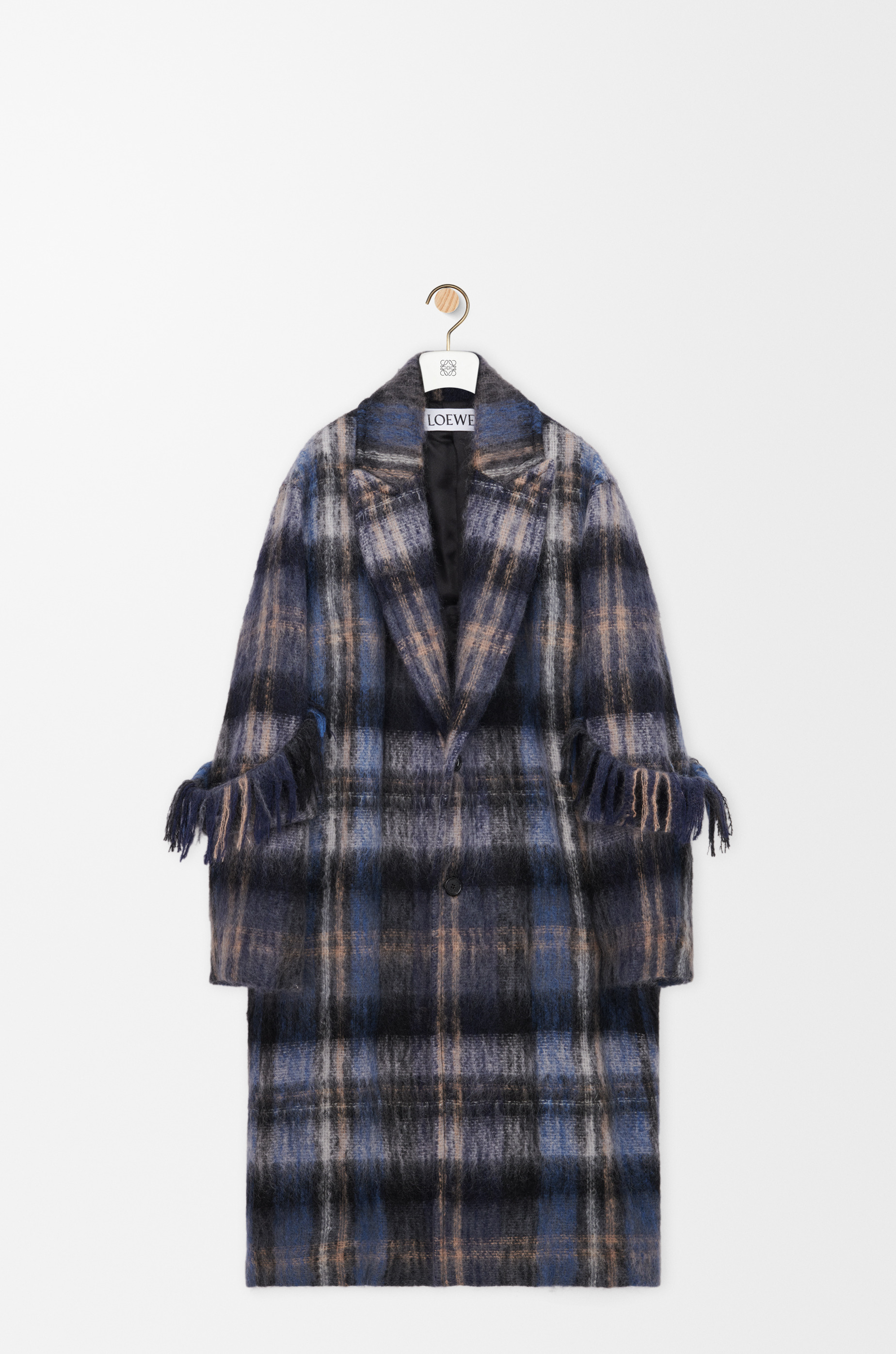 Coat in medium-weight mohair and wool blend featuring an allover check pattern and double layer sleeves with a fringed turn-up. - Relaxed fit, mid length - Peak lapel - Button front fastening - Seam pockets, inside welt pocket - Back vent - Fully lined Colour: Blue/Multicolor Main material: Mohair/Wool/Polyamide Weight: 1.0 kg Made in: Italy Materials & care Main Material: 64% mohair 31% wool 5% polyamide