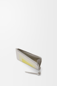 Coin cardholder in nappa calfskin with intarsio squares inspired by Josef Albers's "Homage to the Square" series. This cardholder is part of the LOEWE x Albers collection. - Four card slots - One zipped coin compartment with knotted calfskin pull - Calfskin lining - Silver embossed LOEWE Colour: Pale Grey/Light Citrine Metallic colour: Palladium Main material: Nappa Calf Weight: 0.0415 kg Height: 7.5 cm Width: 13 cm Depth: 1 cm Made in: Spain