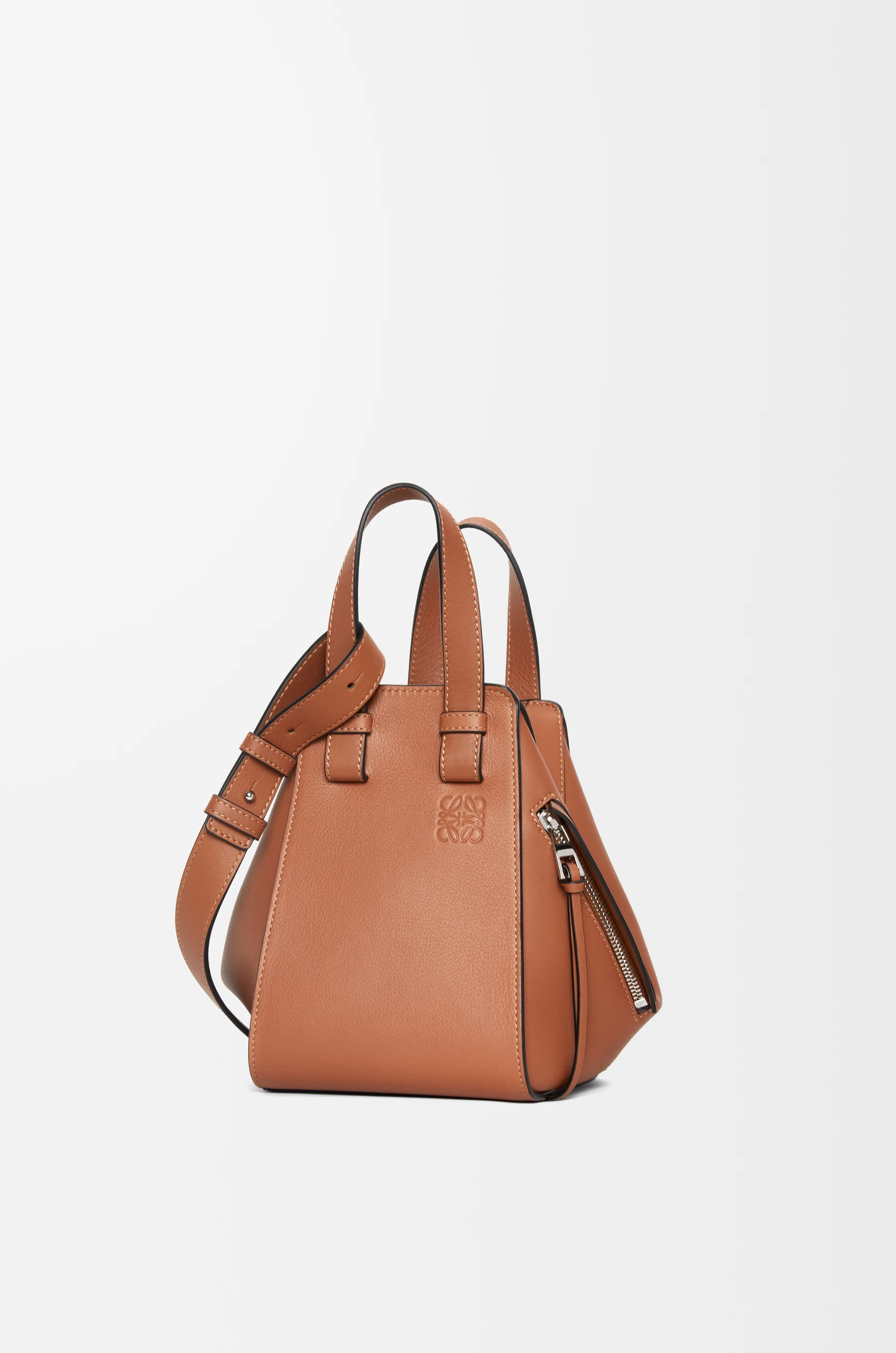 The Hammock is a multifunctional bag with supple side panels that release to change its shape. This compact version is crafted in classic calfskin. - Shoulder, crossbody or hand carry - Detachable and adjustable strap, top handles - Internal hook closure - One external zip pocket, two internal slip pockets - Herringbone cotton canvas lining - Embossed Anagram Details - Colour : Tan - Metallic colour : Palladium - Main material : Classic Calf - Strap length : 78 - 85 cm - Strap Drop : 53 - 57 cm - Handle drop : 10 cm - Weight : 0.5 kg - Height (cm) : 20.8 - Width (cm) : 14.4 - Depth (cm) : 19.5 - Height (inch) : 8.2 - Width (inch) : 5.7 - Depth (inch) : 7.7 - Model ID : A538H13X10 - CIL : - 0010851996 - Made in : Spain