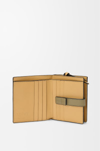 Compact zip wallet in soft grained calfskin in contrasting colours. - Eight card slots, one large pocket - One zipped coin compartment with calfskin pull - Snap button closure - Calfskin lining - Embossed Anagram Colour: Shell Grey/Eucalyptus Metallic colour: Palladium Main material: Soft Grained Calf Weight: 0.12 kg Height: 11 cm Width: 9 cm Depth: 2.5 cm Made in: Spain