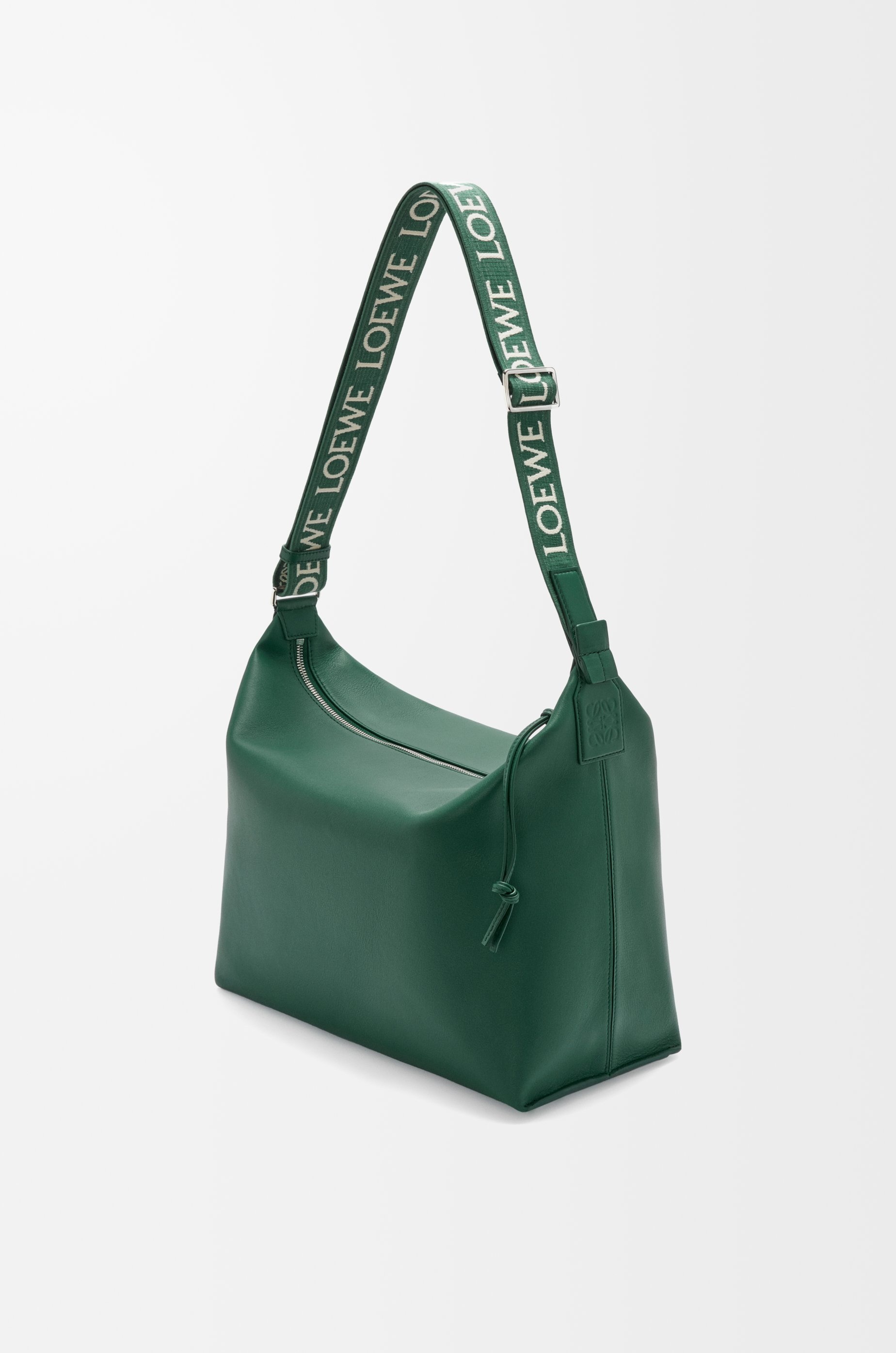 The Cubi crossbody is a capacious and soft bag that adapts easily to the body. This version is crafted in supple smooth calfskin. - Suitable for a 13 inch laptop - Crossbody or shoulder carry - Adjustable LOEWE jacquard strap - Zip closure with calfskin pull - One internal slip pocket - Herringbone cotton canvas lining - Embossed Anagram Details - Colour : Evergreen - Metallic colour : Palladium - Main material : Supple Smooth Calf/Jacquard - Strap length : 70 - 125 cm - Weight : 0.54 kg - Height (cm) : 30 - Width (cm) : 44 - Depth (cm) : 18 - Height (inch) : 11.8 - Width (inch) : 17.3 - Depth (inch) : 7.1 - Model ID : B906K70X13 - CIL : - 0011192051 - Made in : Portugal