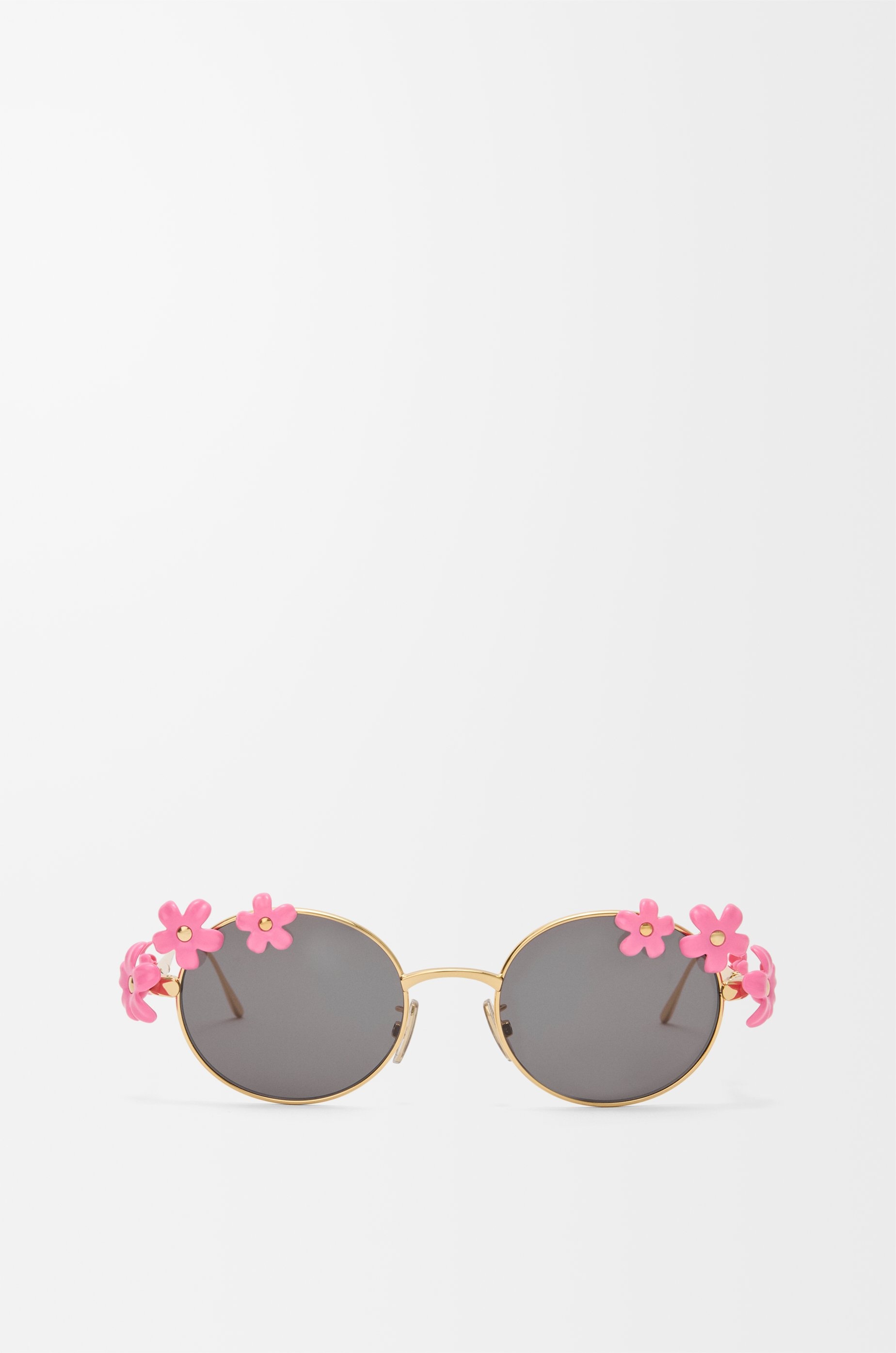 Oval-shaped sunglasses in a light metal construction with daisy embellishments. - Universal fit - UVA/UVB protection - Engraved LOEWE Colour: Pink Main material: Metal Weight: 0.035 kg Made in: Italy