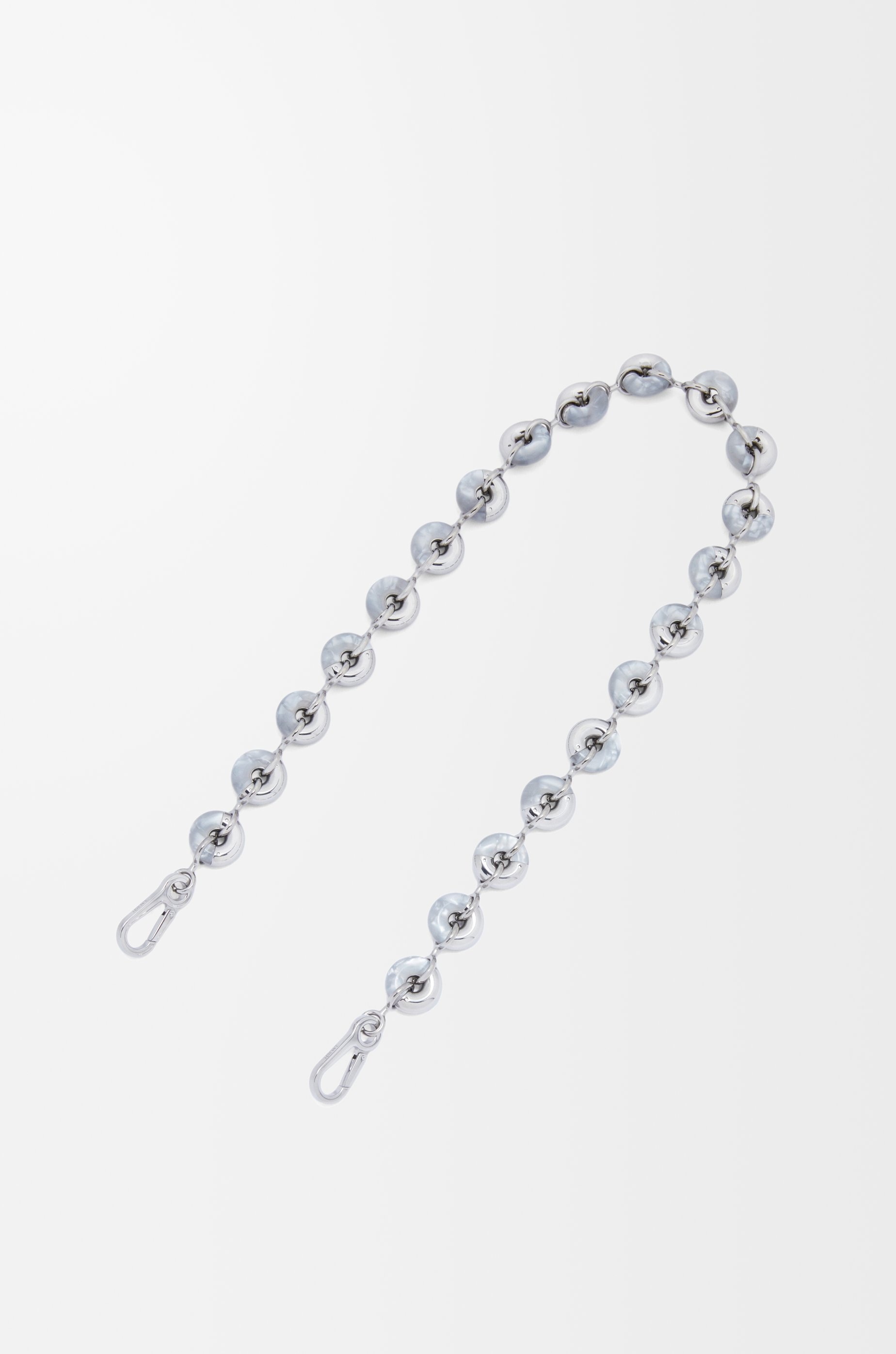 Detachable donut chain strap in brass and acetate. - 70cm long - Hook fastening - Engraved LOEWE Details - Colour : Nacre/Palladium - Metallic colour : Palladium - Main material : Acetate/Stainless Steel - Weight : 0.25 kg - Width (cm) : 70 - Depth (cm) : 2 - Width (inch) : 27.6 - Depth (inch) : 0.8 - Model ID : C564T03X08 - CIL : - 0011210200 - Made in : Hong Kong SAR