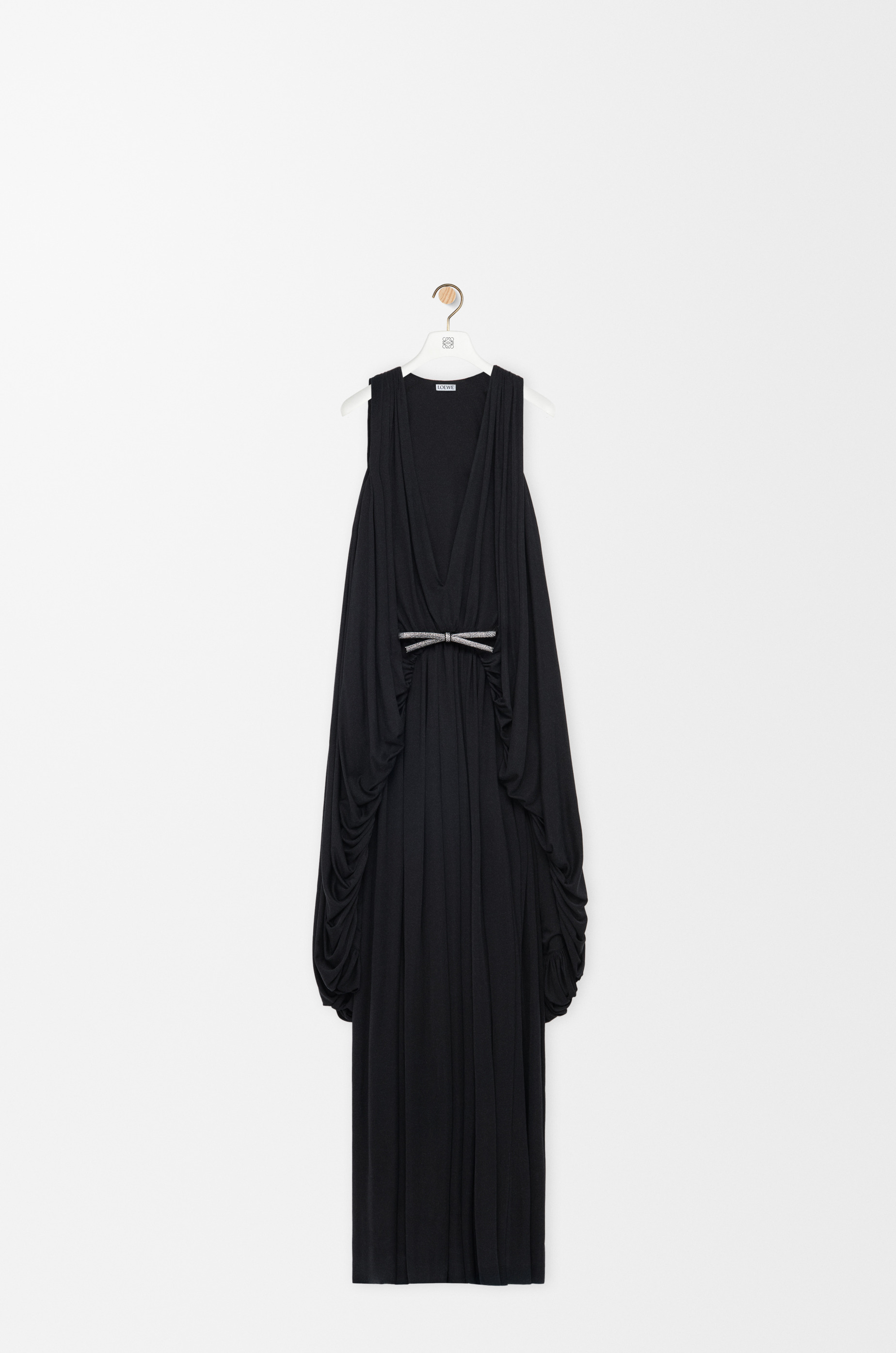 Dress in lightweight fluid silk jersey featuring a draped silhouette and a crystal-embellished suede bow at the front. - Regular fit, long length - Deep V-neck - Zip fastening on the skirt Colour: Black Main material: Silk Weight: 0.7 kg Made in: Spain Materials & care Main Material: 100% silk