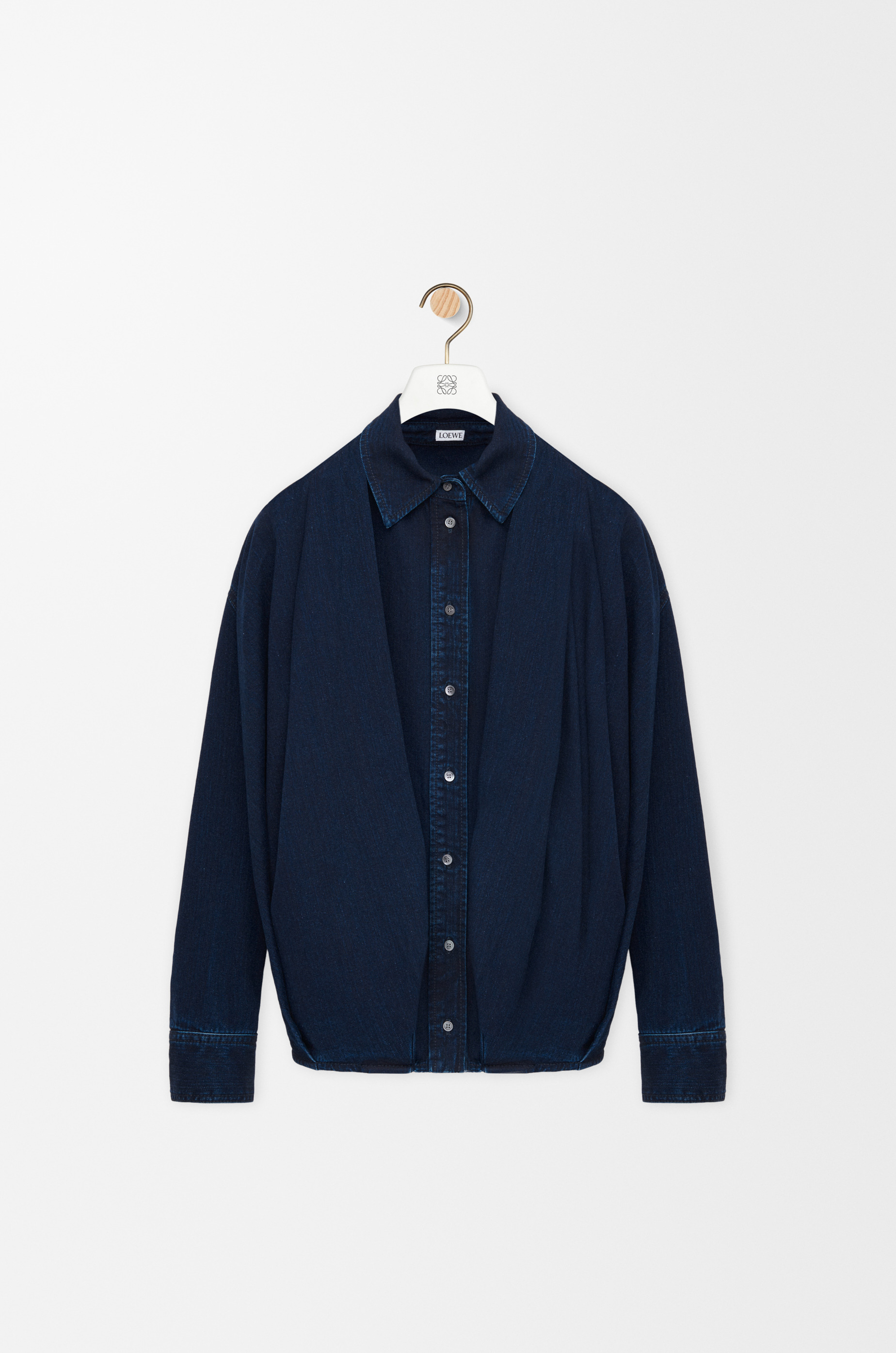 Shirt in lightweight washed cotton denim featuring a balloon silhouette with draping at the front. - Relaxed fit, regular length - Classic collar - Concealed button front fastening, buttoned cuffs - Anagram embroidery placed at the back Colour: Dark Indigo Main material: Cotton Weight: 0.8 kg Made in: Italy Materials & care Main Material: 100% cotton