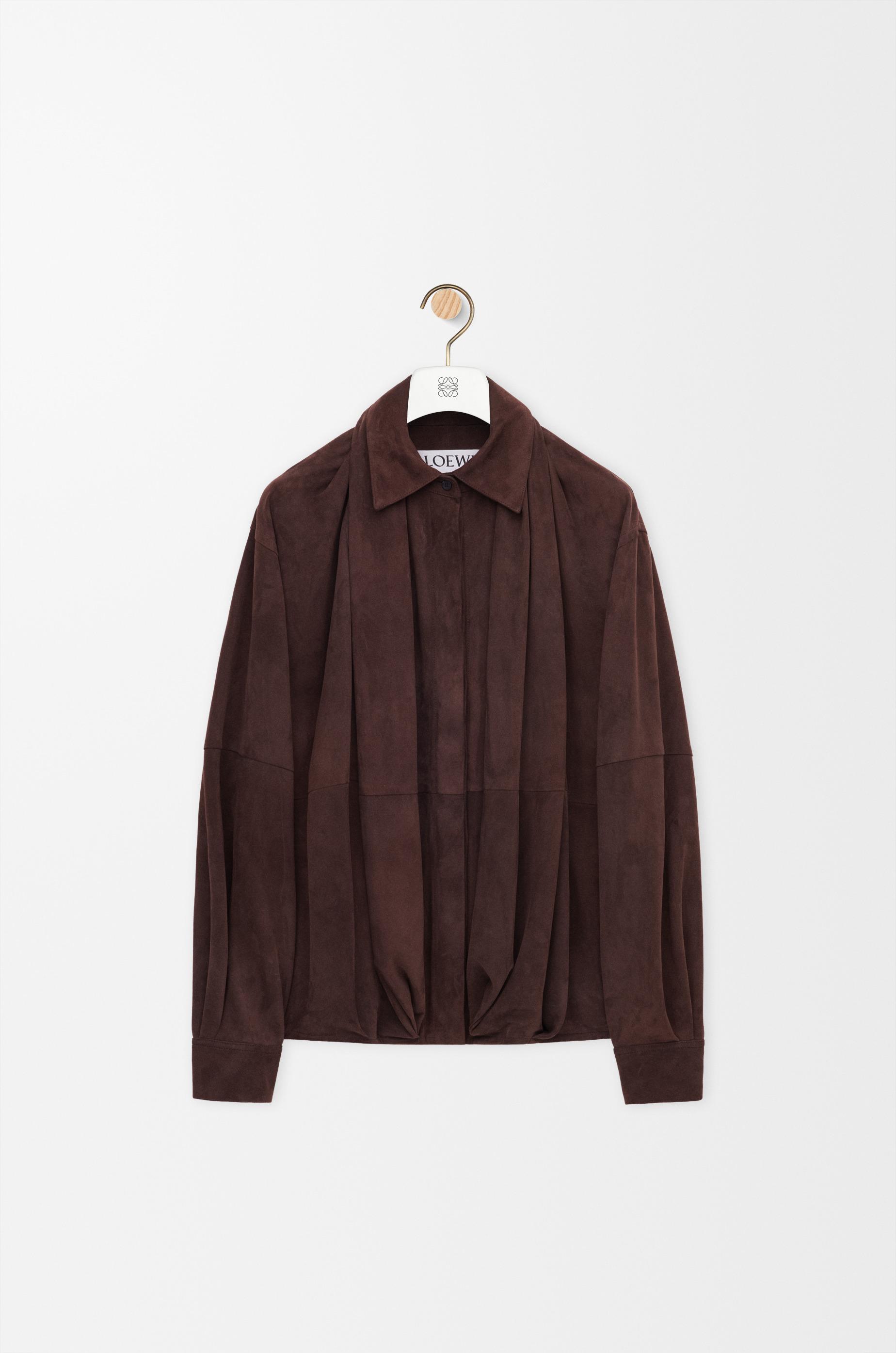 Shirt in lightweight suede goatskin featuring a balloon silhouette with draping at the front. - Relaxed fit, regular length - Classic collar - Concealed button front fastening, buttoned cuffs - Fully lined - Anagram embossed leather patch placed at the back Colour: Brown Main material: Suede Weight: 0.8 kg Made in: Italy Materials & care Main Material: 100% goat skin